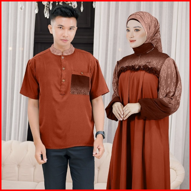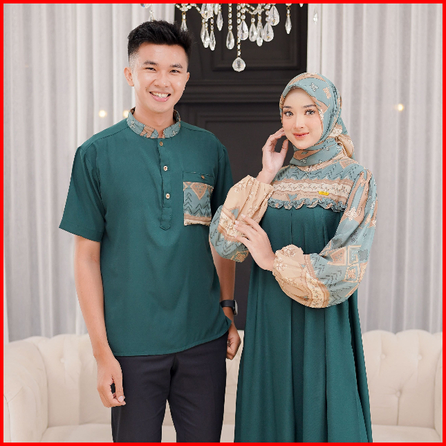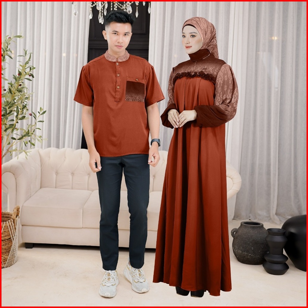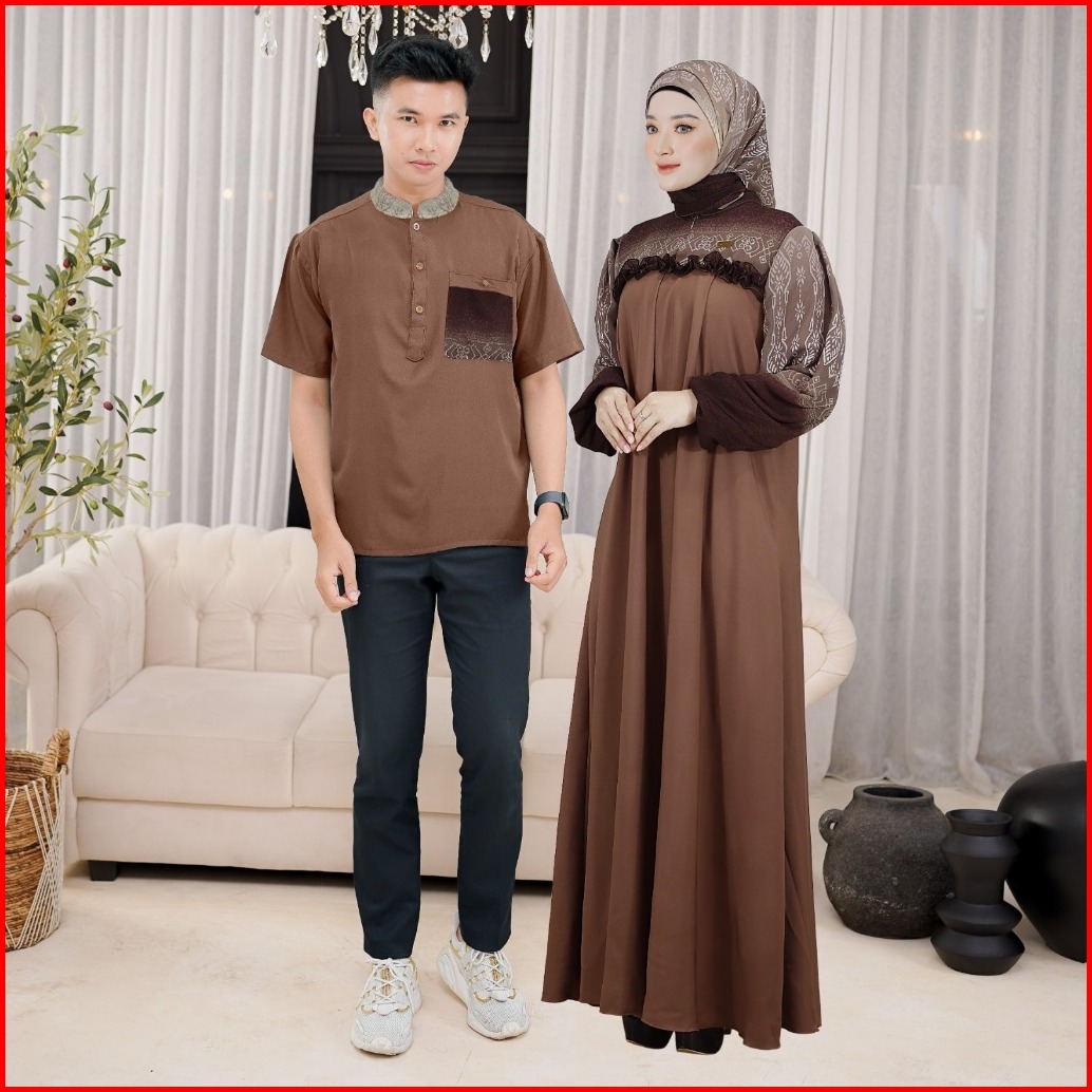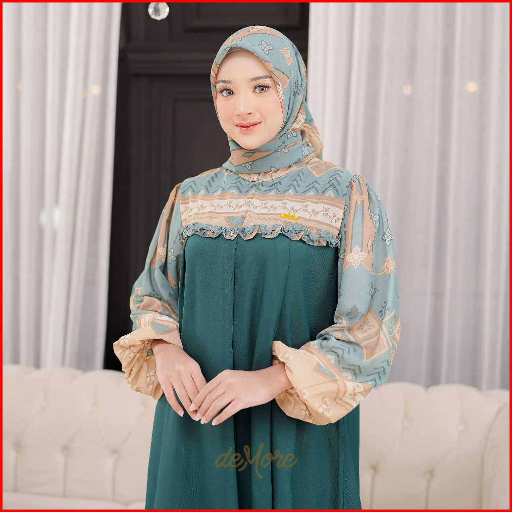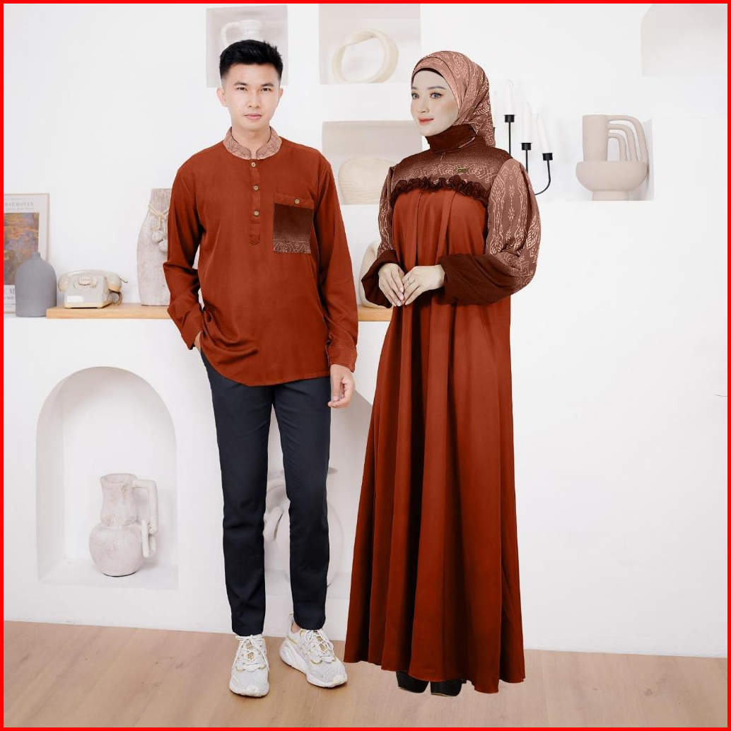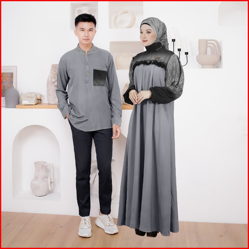 Ellena Gamis Set Couple Free Hijab Segiempat Motif Ethnic Matt. Torino Grade A Premium By Demore