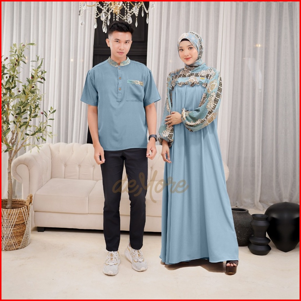 Skuder Set Couple Pasangan Lebaran Free Hijab Pashmina Motif Cantik Matt Torino By Demore