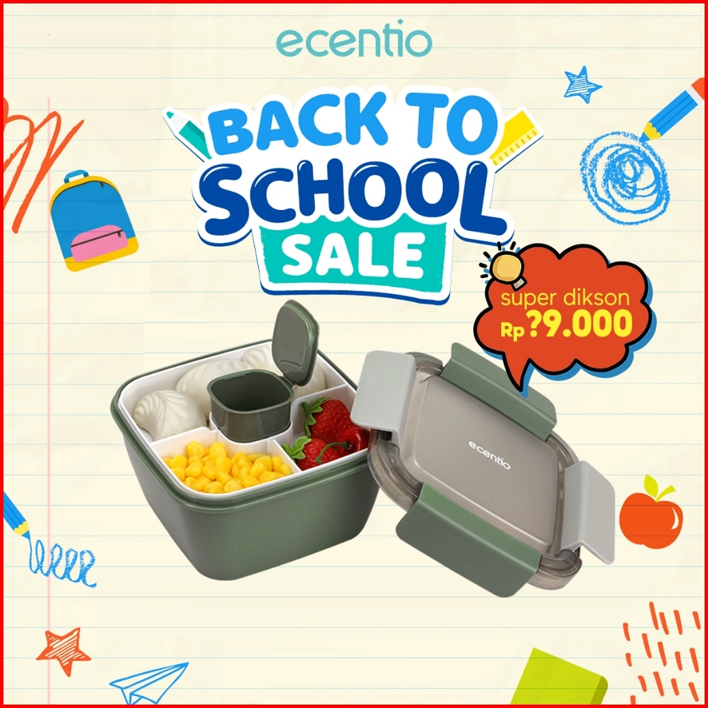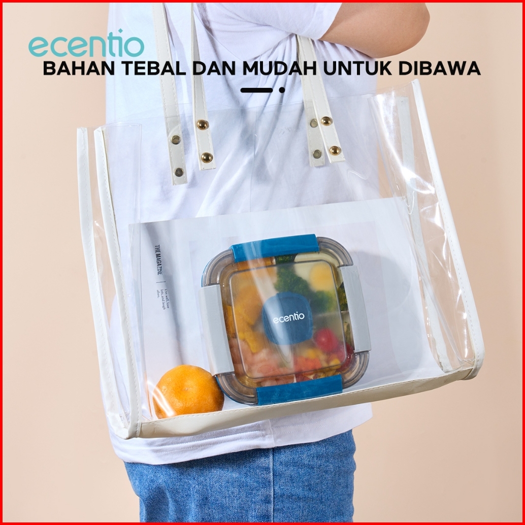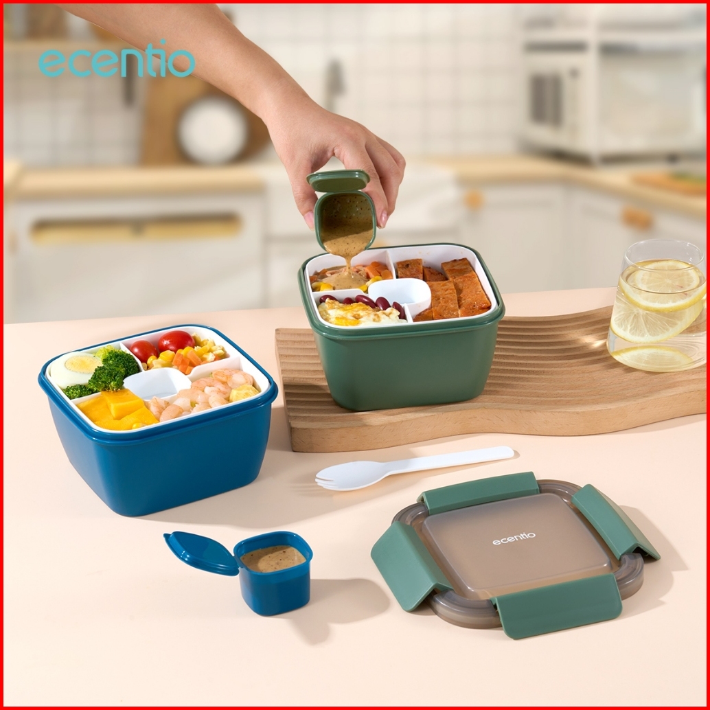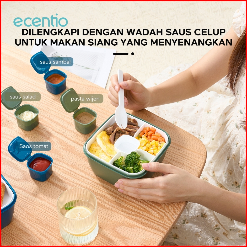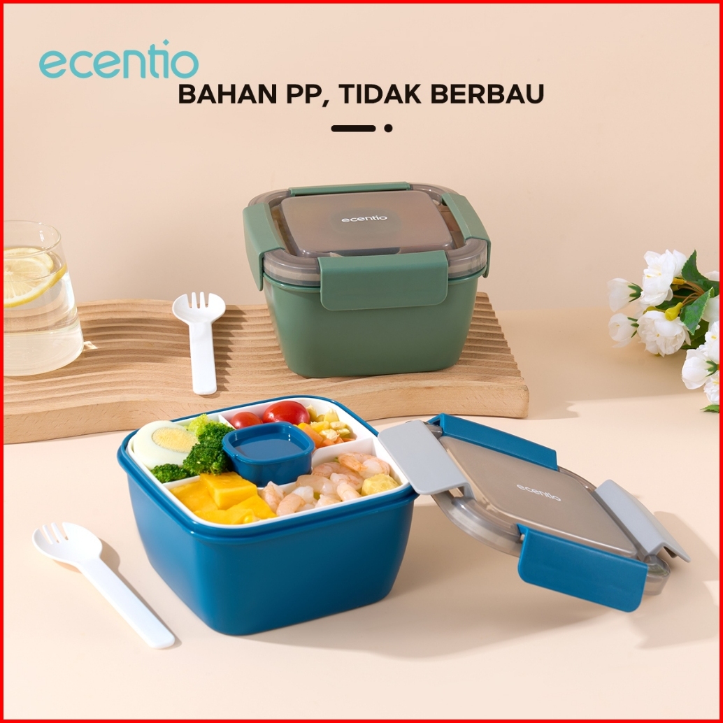 Ecentio Lunch Box 1100ml Kotak Makan Anti Tumpah Free Wadah Saus Kecil Tempat Bekal Makan Set Anti Bocor Lunch Box Tas S