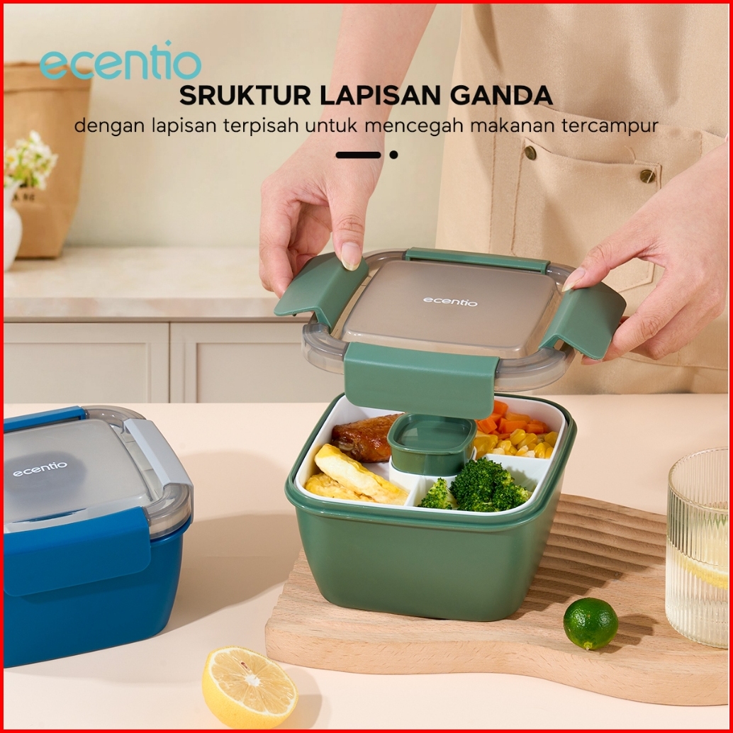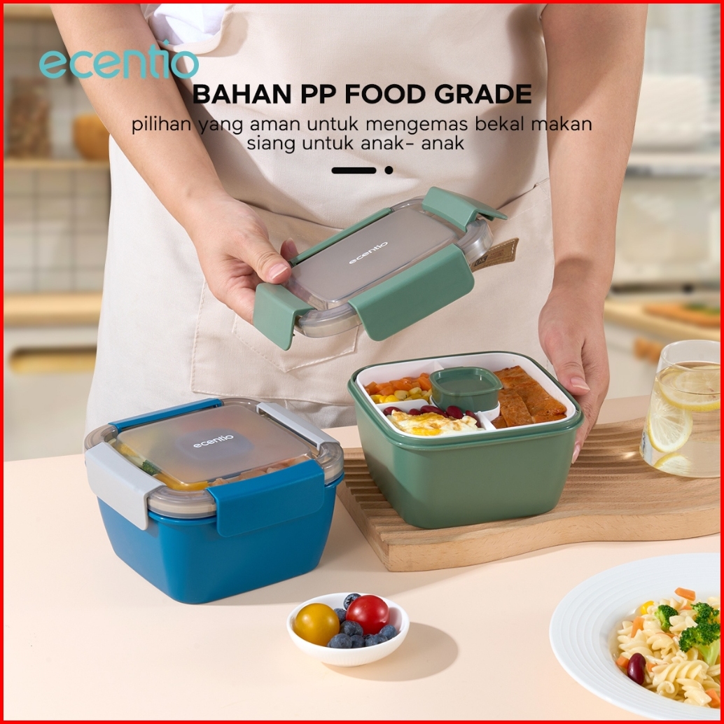 Ecentio Lunch Box 1100ml Kotak Makan Anti Bocor Microwave Safe Bekal Makanan Anti Tumpah