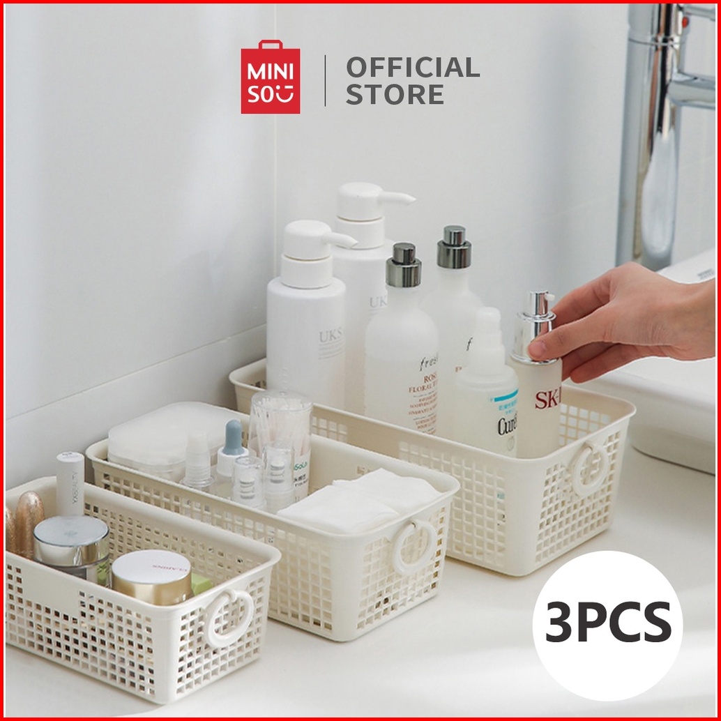 Miniso Keranjang Penyimpanan 3 Potong Kotak Serbaguna Tempat Kain Handuk Rak Multifungsi Storage Box