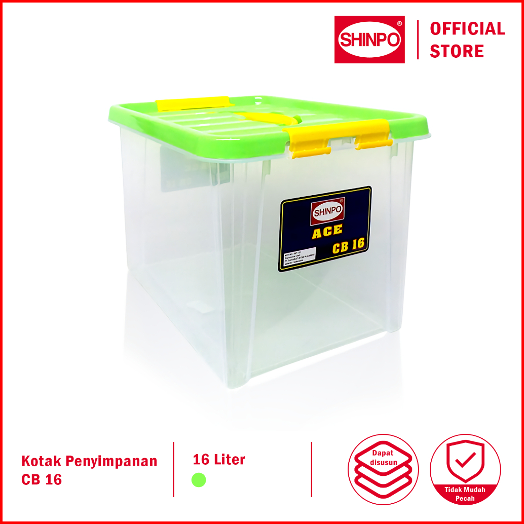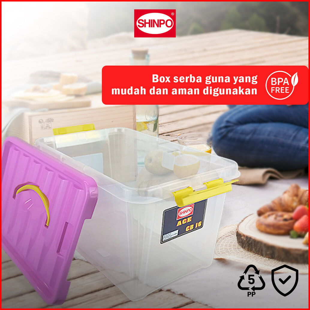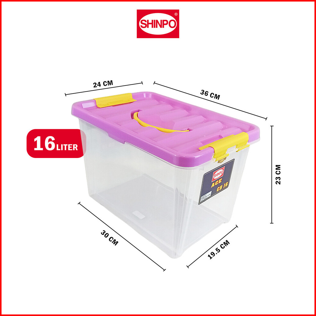 Shinpo Ace Container Box Plastik With Lock Klip Pengunci 16 L
