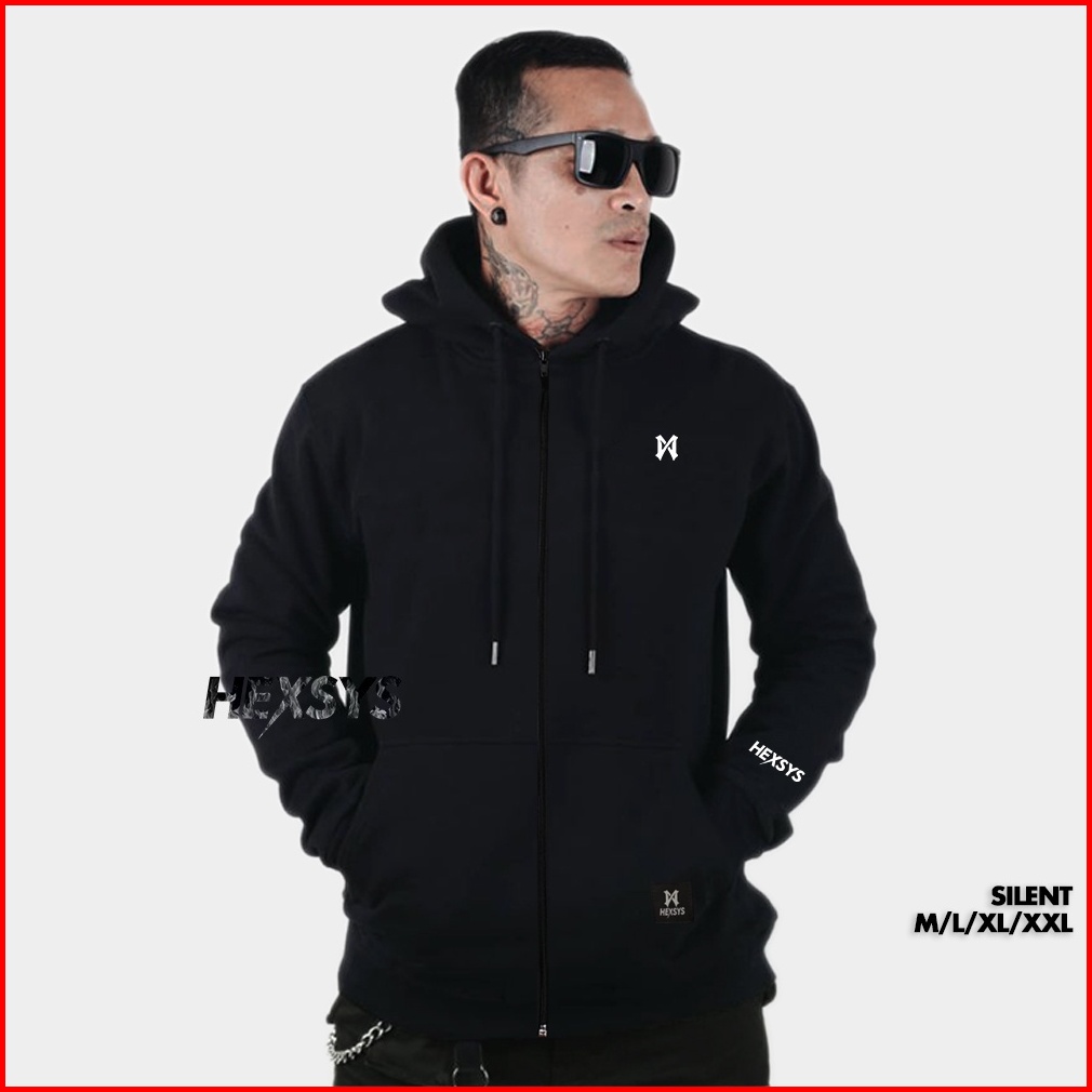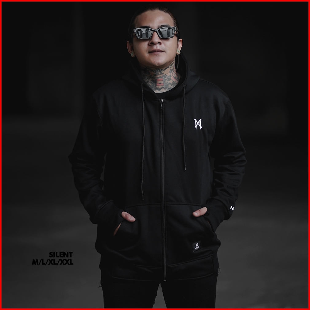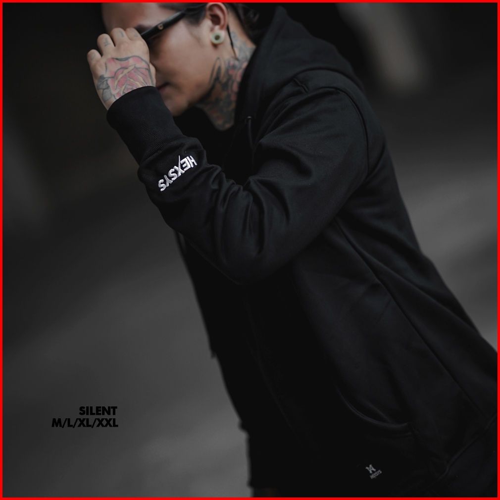 Bossque X Hexsys- Silent Hoodie Pria Distro Zipper Bordir Sweater Hoodie Pria Original Roundhand