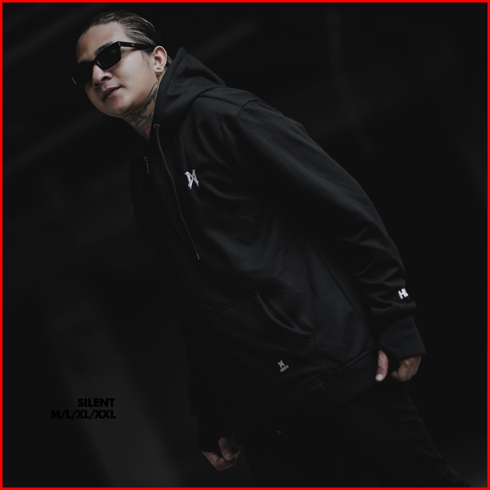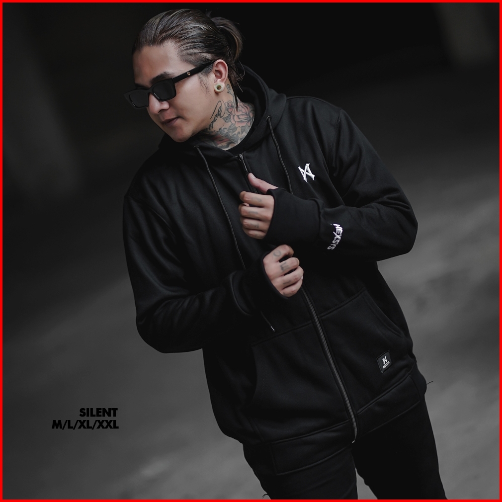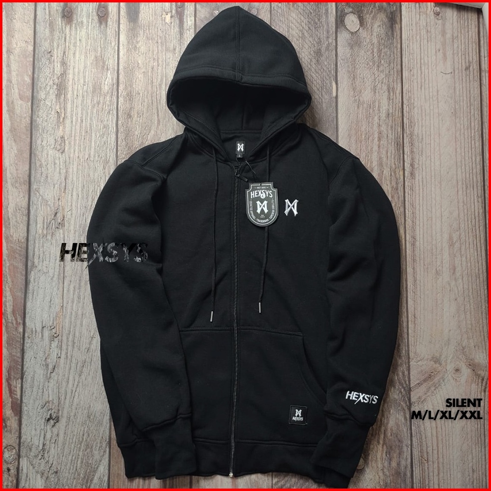 Bossque X Hexsys- Silent Hoodie Pria Distro Zipper Bordir Sweater Hoodie Pria Original Roundhand