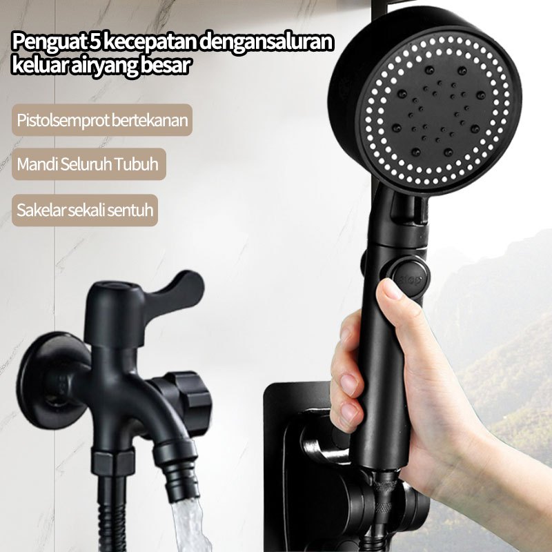 Kepala Shower Mandi Premium Portabel dengan Selang Shower Kamar Mandi Portabel Dapat Disesuaikan 5 Mode