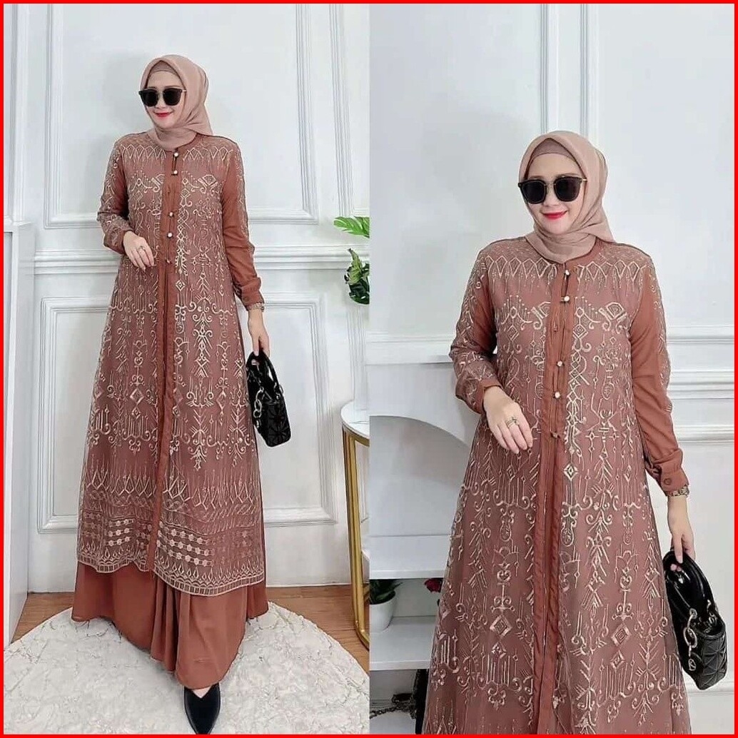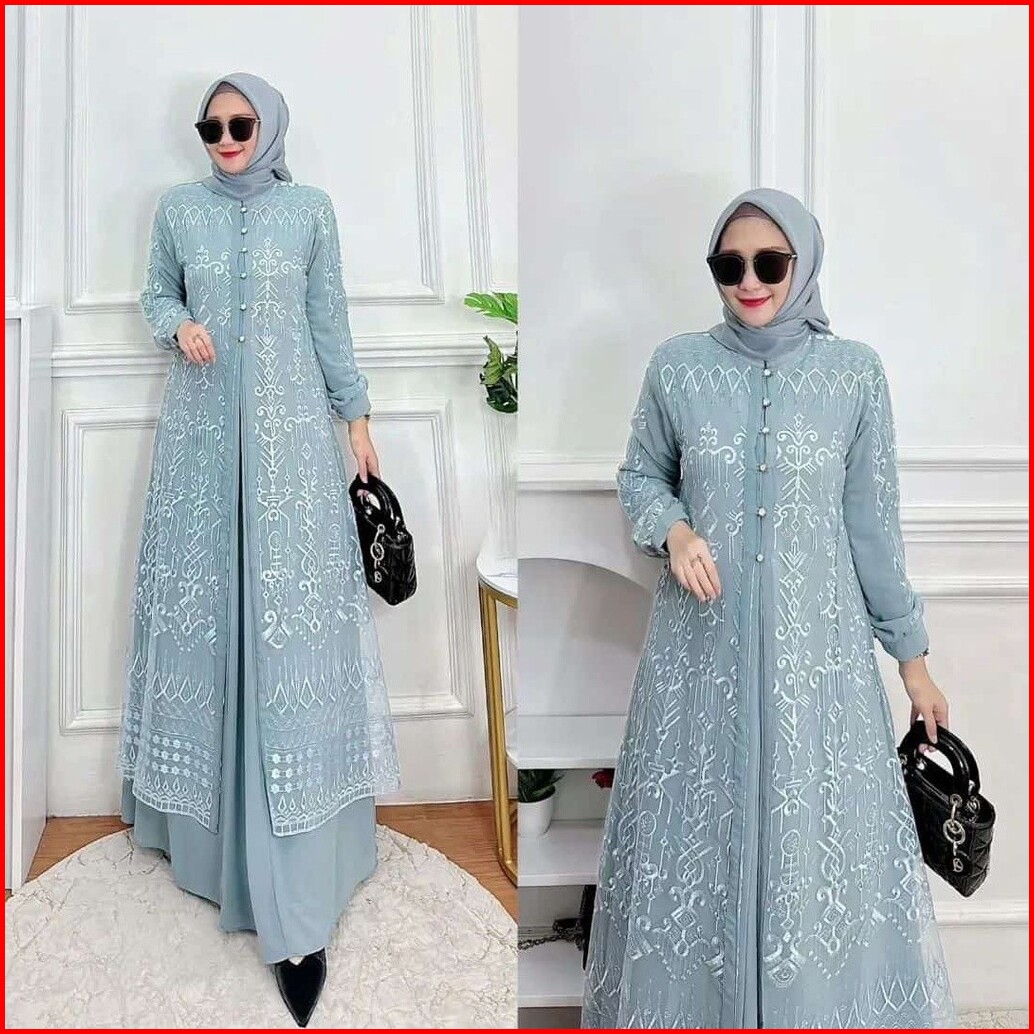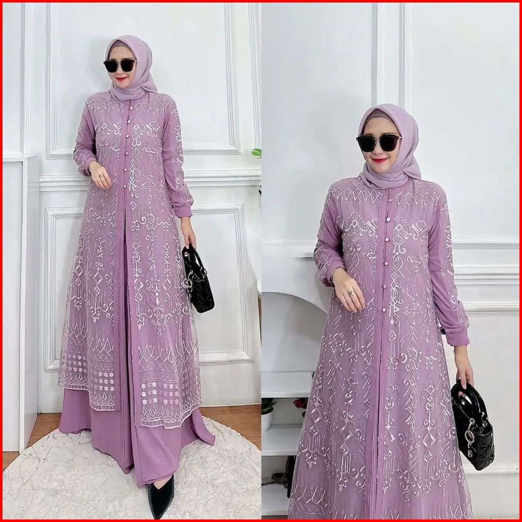 Vallina Outfit - Sabrina Maxy Dress Brukat Gamis Muslim Wanita Ceruty Babydoll Kondangan Premium