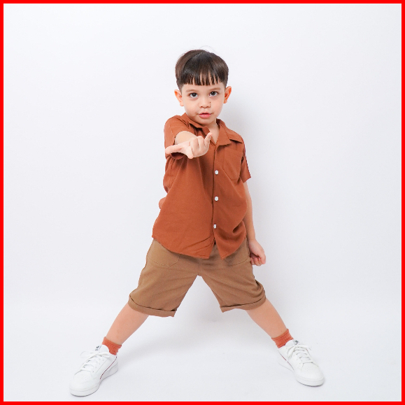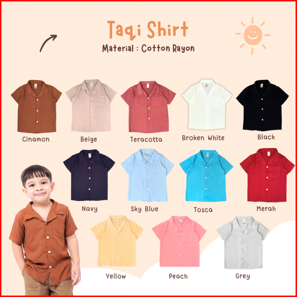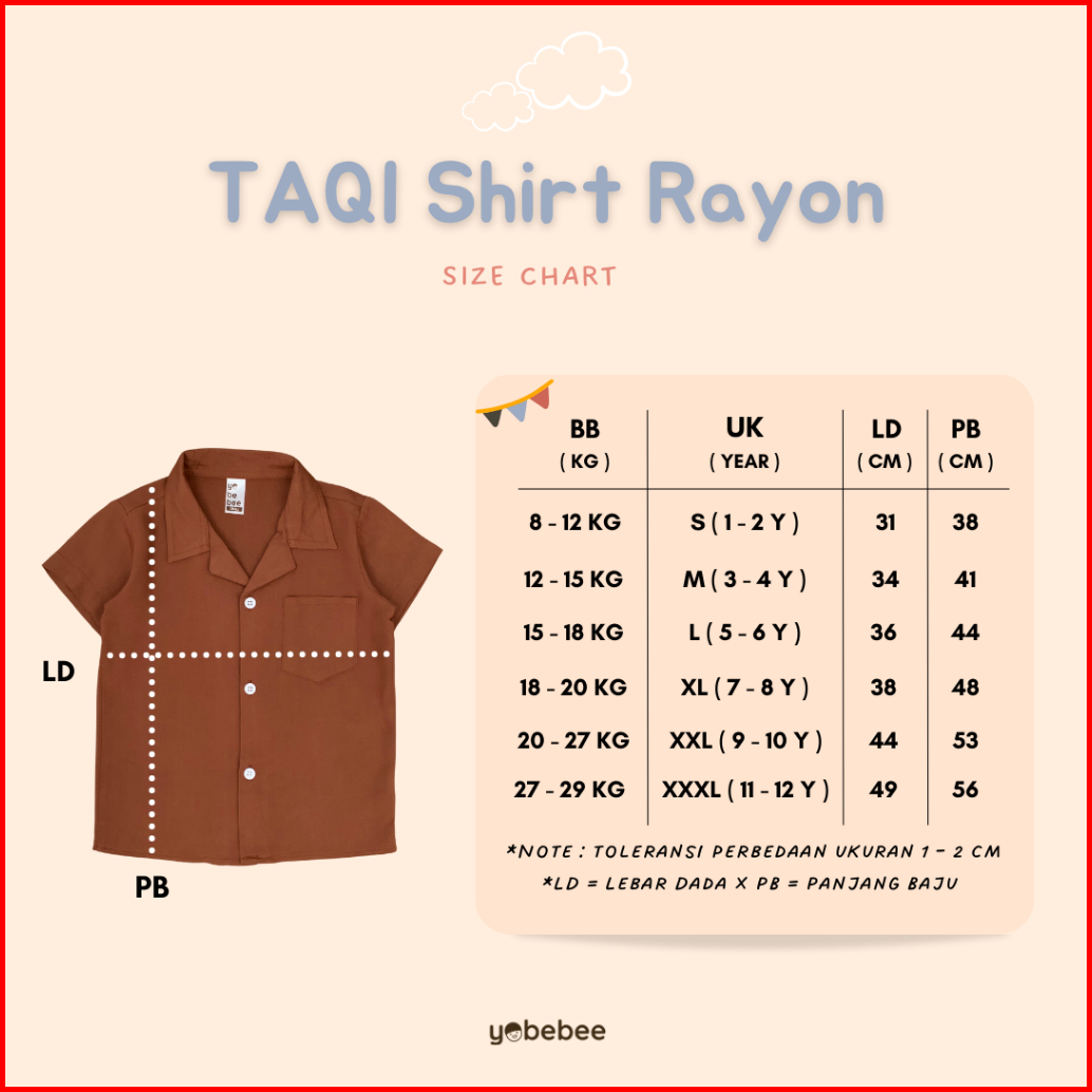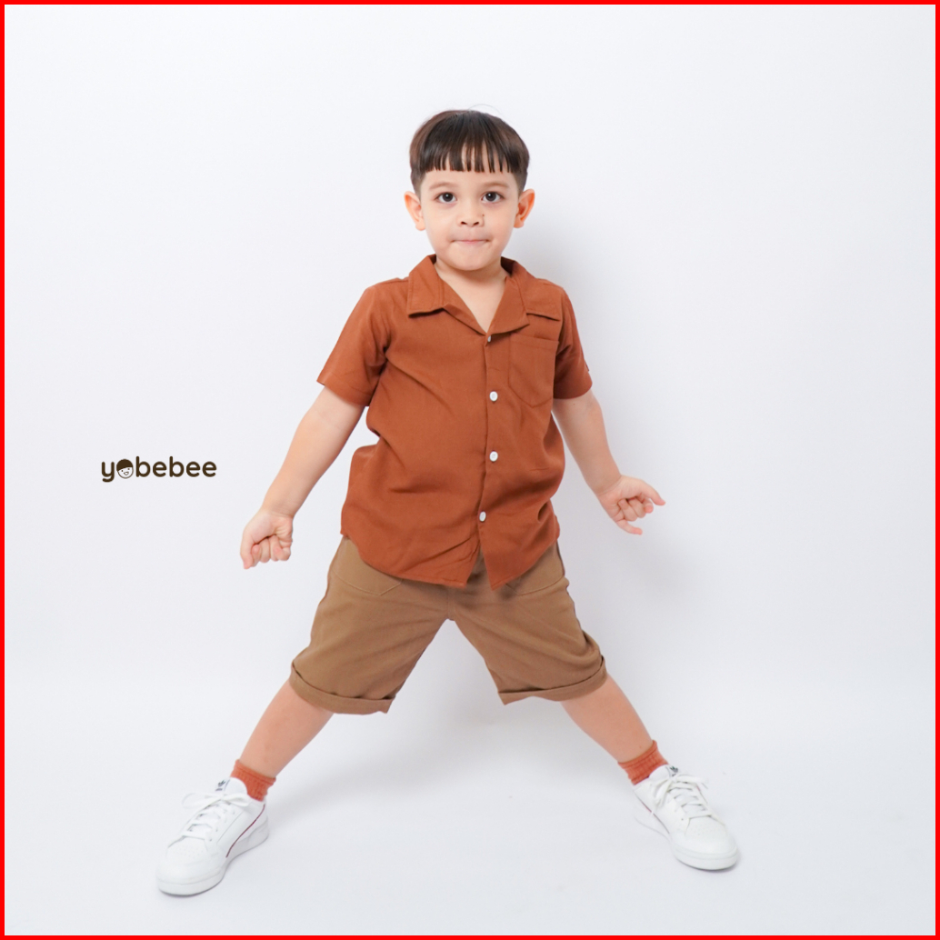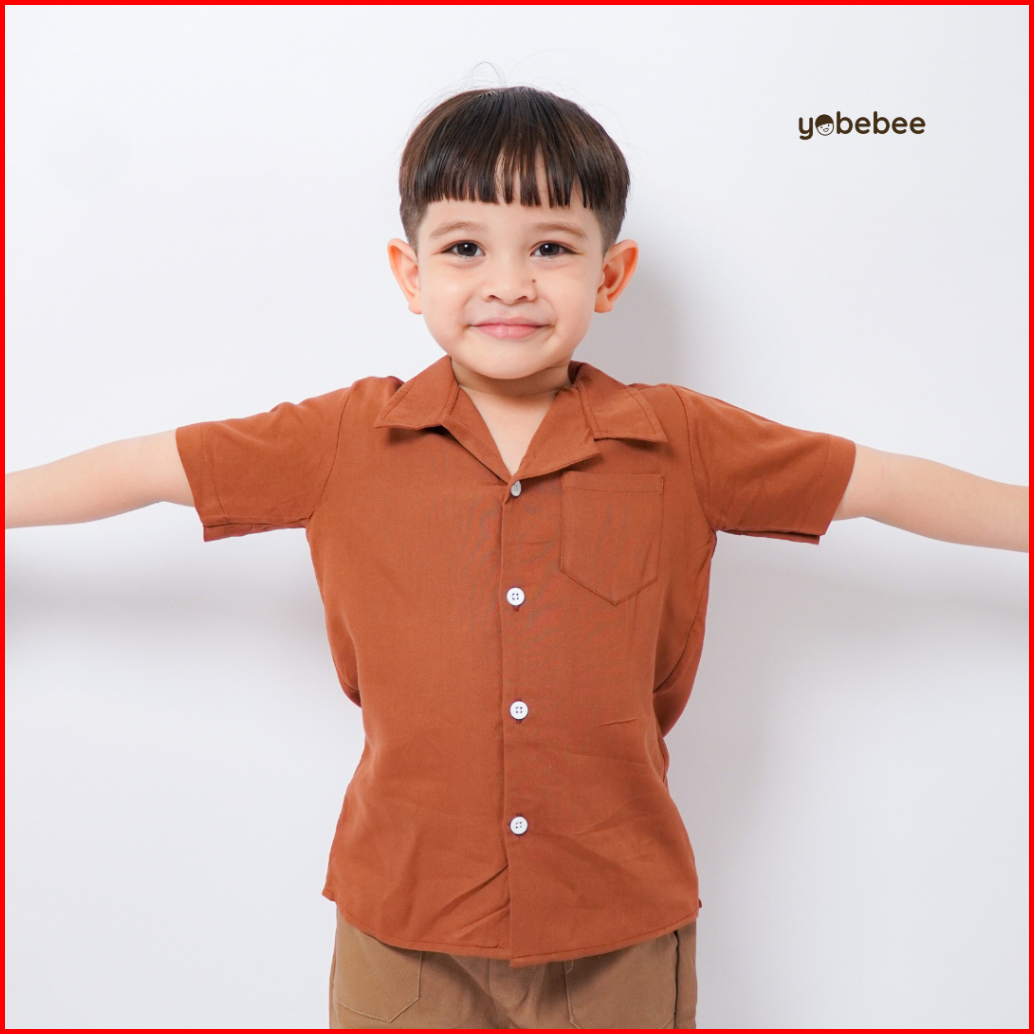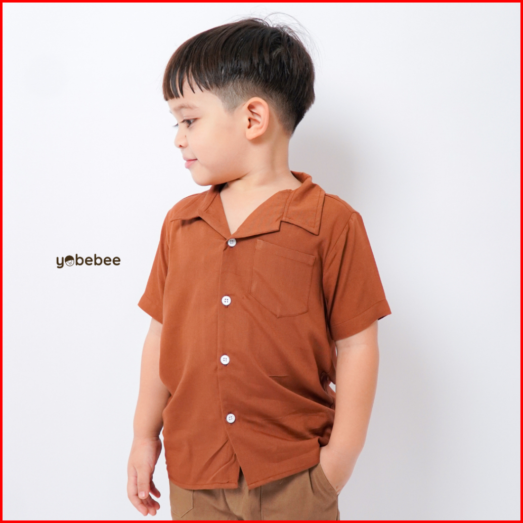 Yobebee Taqi Shirt Kemeja Rayon Anak Laki Laki Usia 2 4 6 8 Tahun Baju Atasan Kids Tangan Pendek Polos Casual Santai Kem