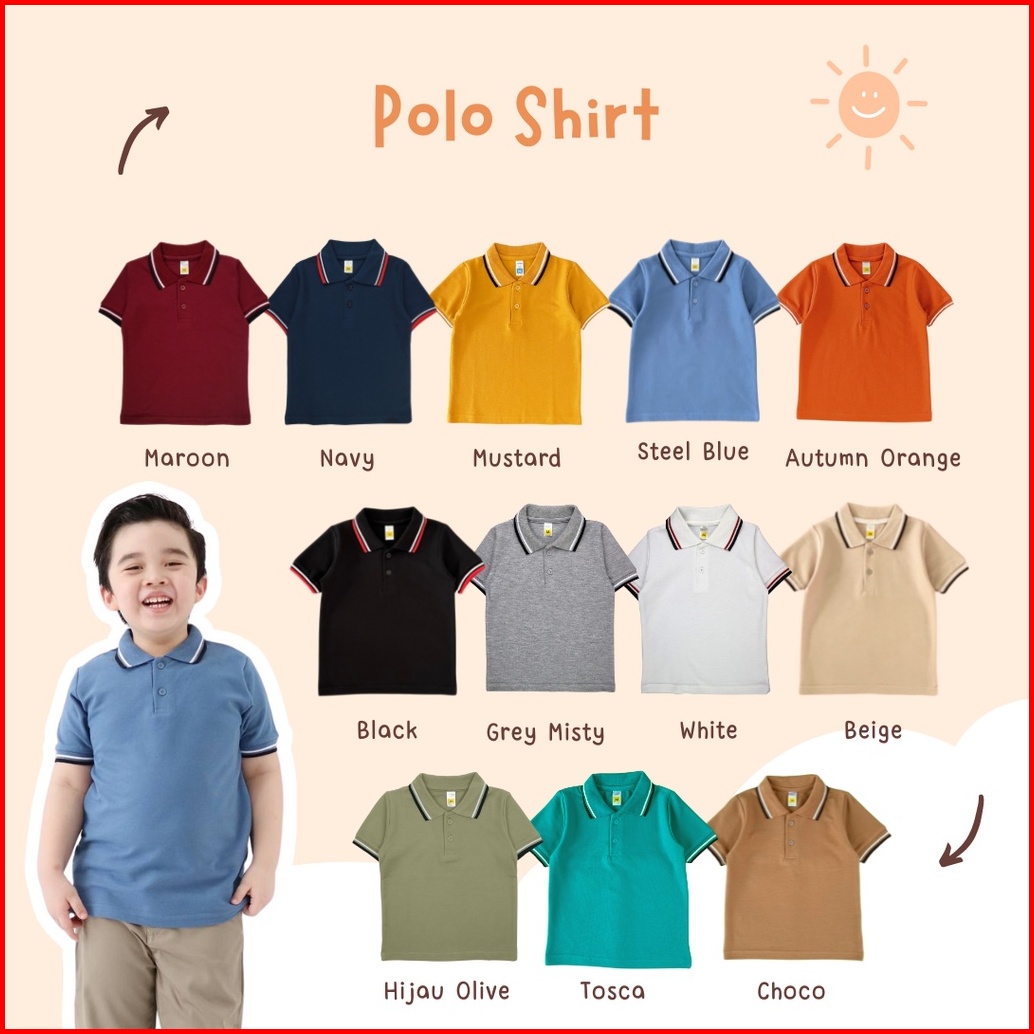 Yobebee Polo Shirt Anak Laki Laki Usia 2 4 6 8 10 Tahun Baju Atasan Kemeja Kaos Polo Strech Casual Santai Kaos Kerah Ana