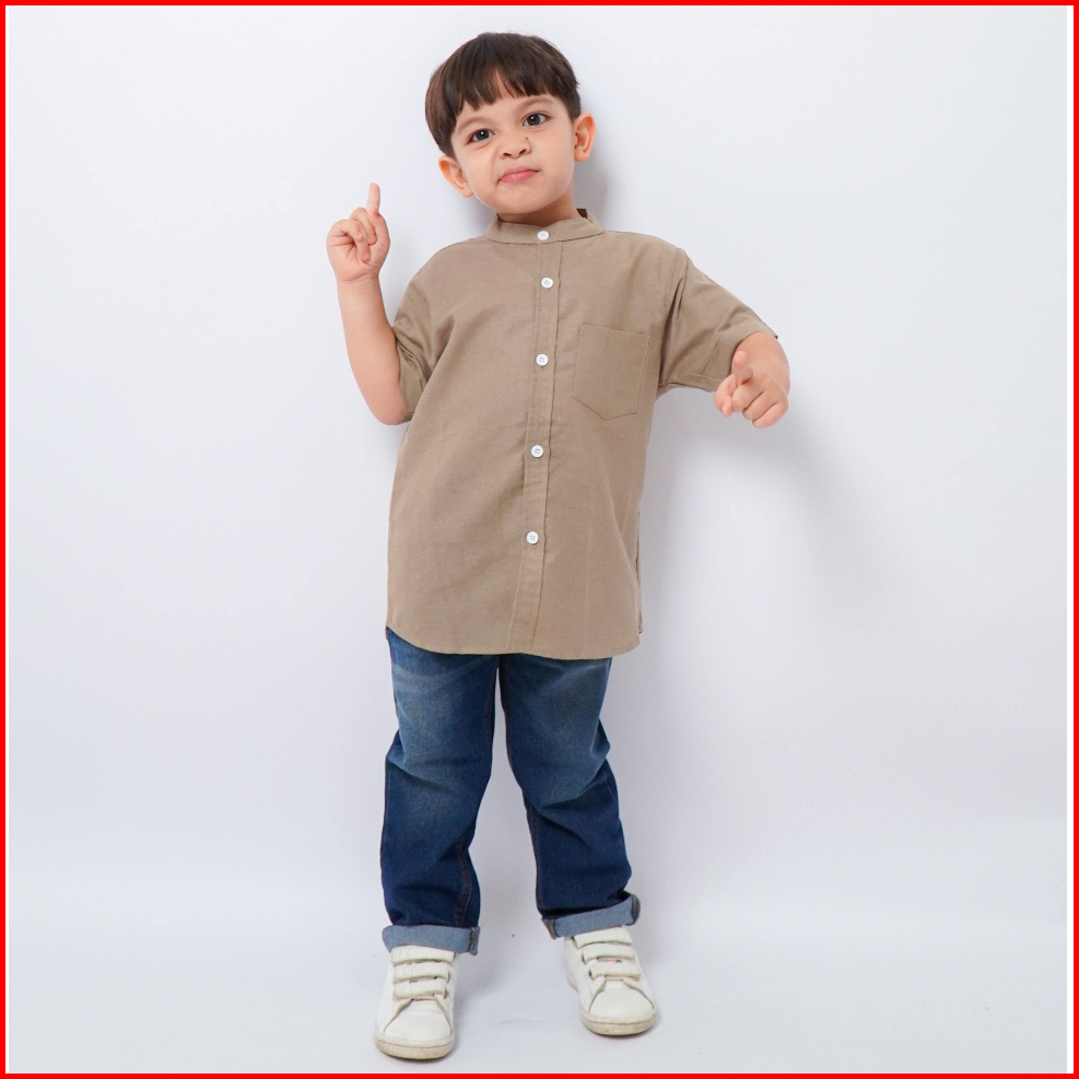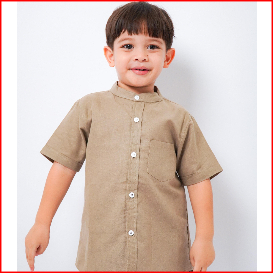 Yobebee Ii Kemeja Linen Tangan Pendek Anak Laki Laki Usia 7 8 9 10 12 Tahun Baju Atasan Kids Polos Kemeja Kerah Chiangi