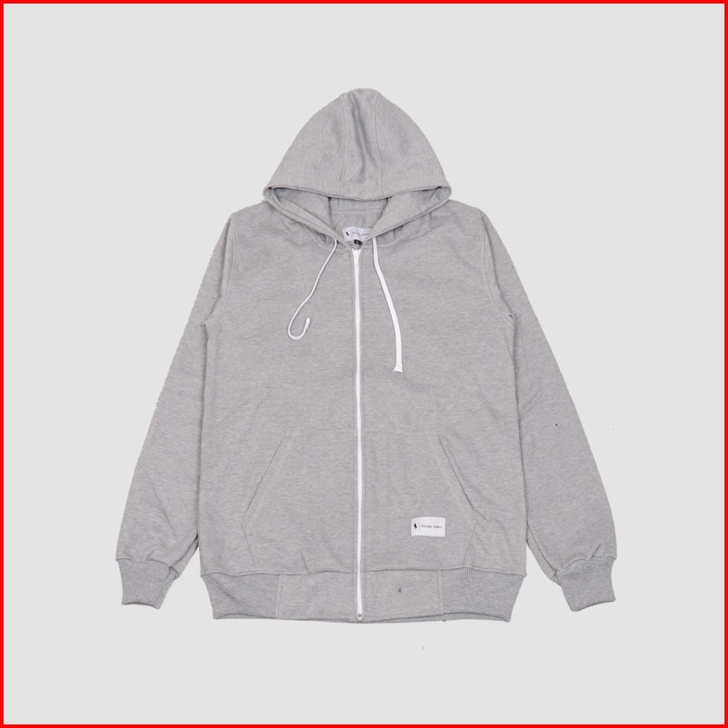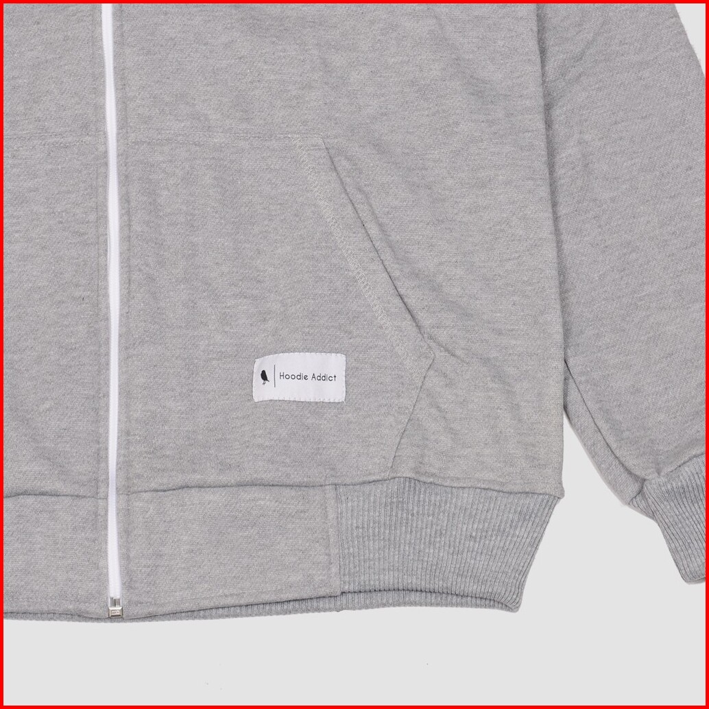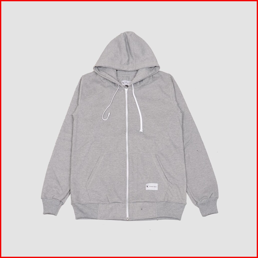 Hoodie Addict - Zipper Hoodie Dewasa Polos Abu Muda Misty Pria Wanita Premium Original Tebal