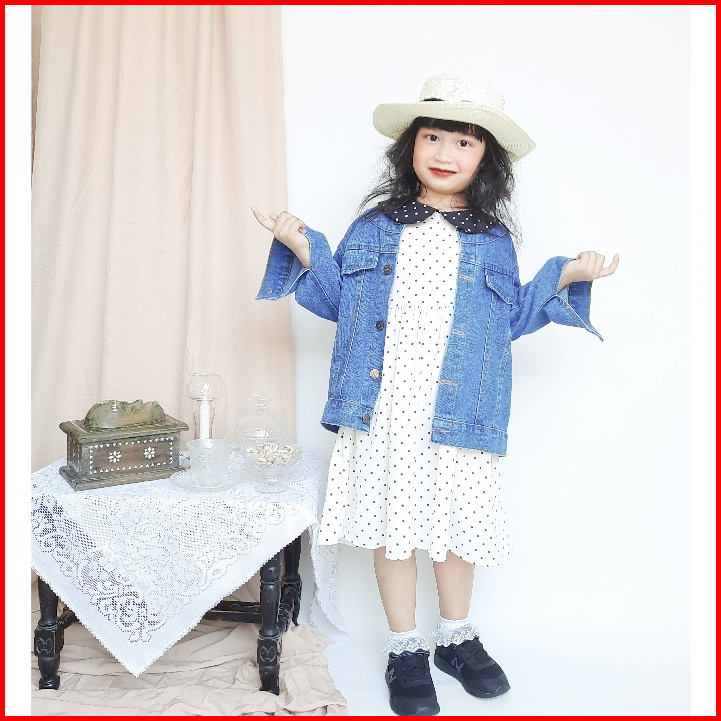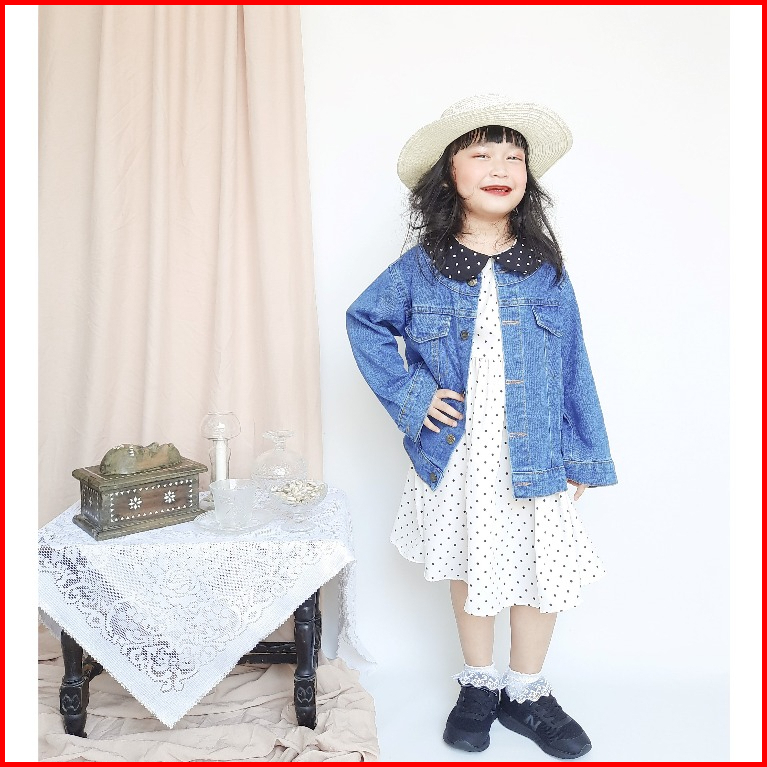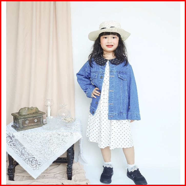 Littlekimy Keiza - Jaket Jeans Anak Kerah Bulat Jacket Anak Perempuan Usia 1 - 7 Tahun