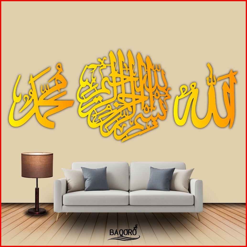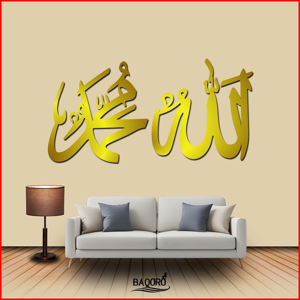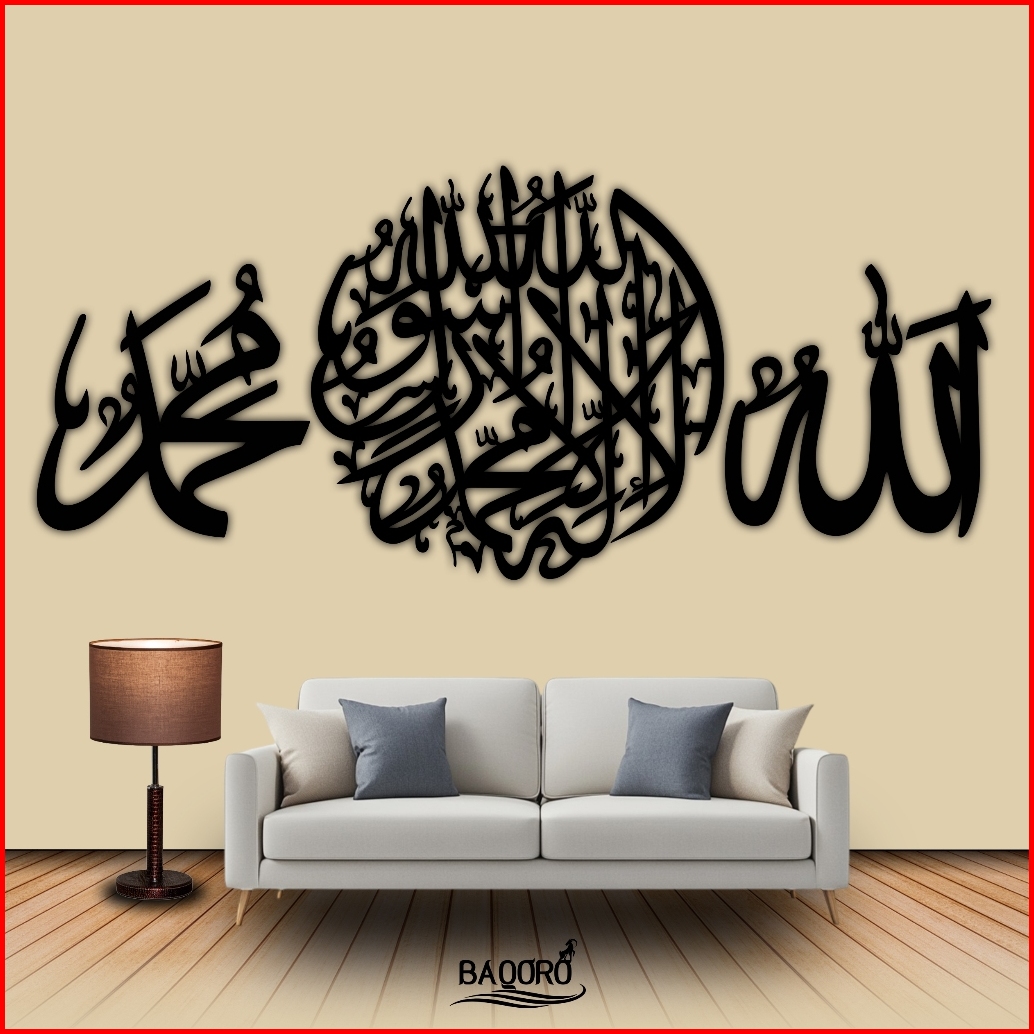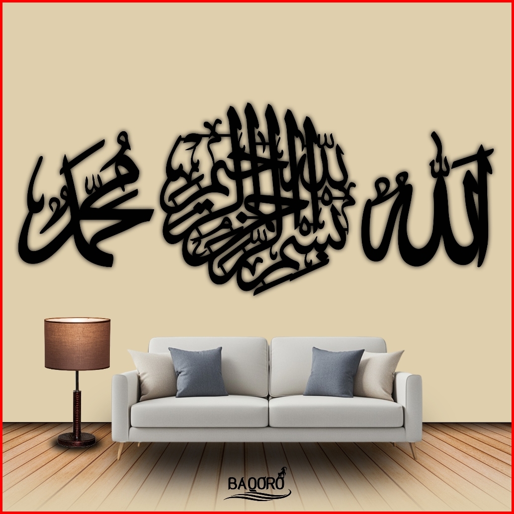 1 Set Kaligrafi Akrilik Hiasan Dinding Allah Muhammad Tauhid Bismillah Silver Hitam Mirror