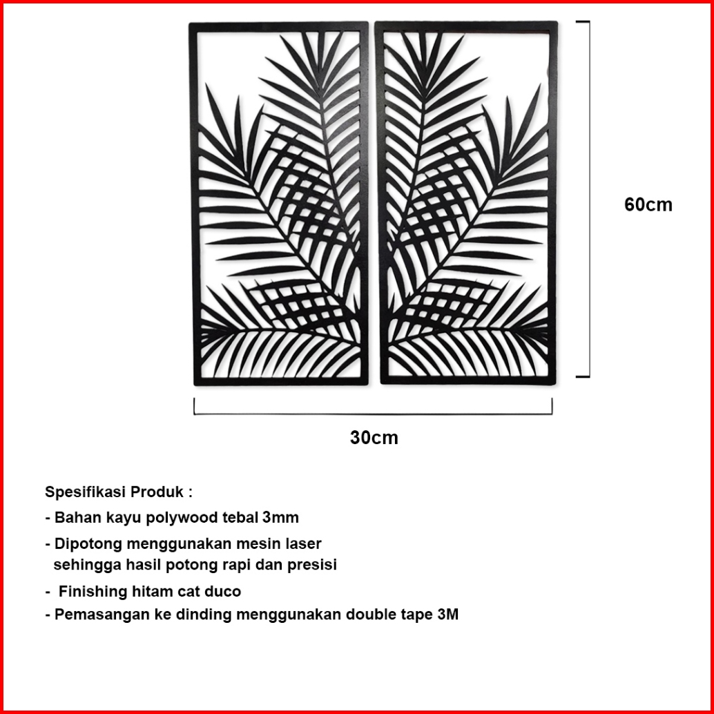 Hiasan Dinding Kayu Laser Cut Motif Daun Bambu Hitam I Walldecor Ruang Tamu Aesthetic Minimalis Ctkaa10