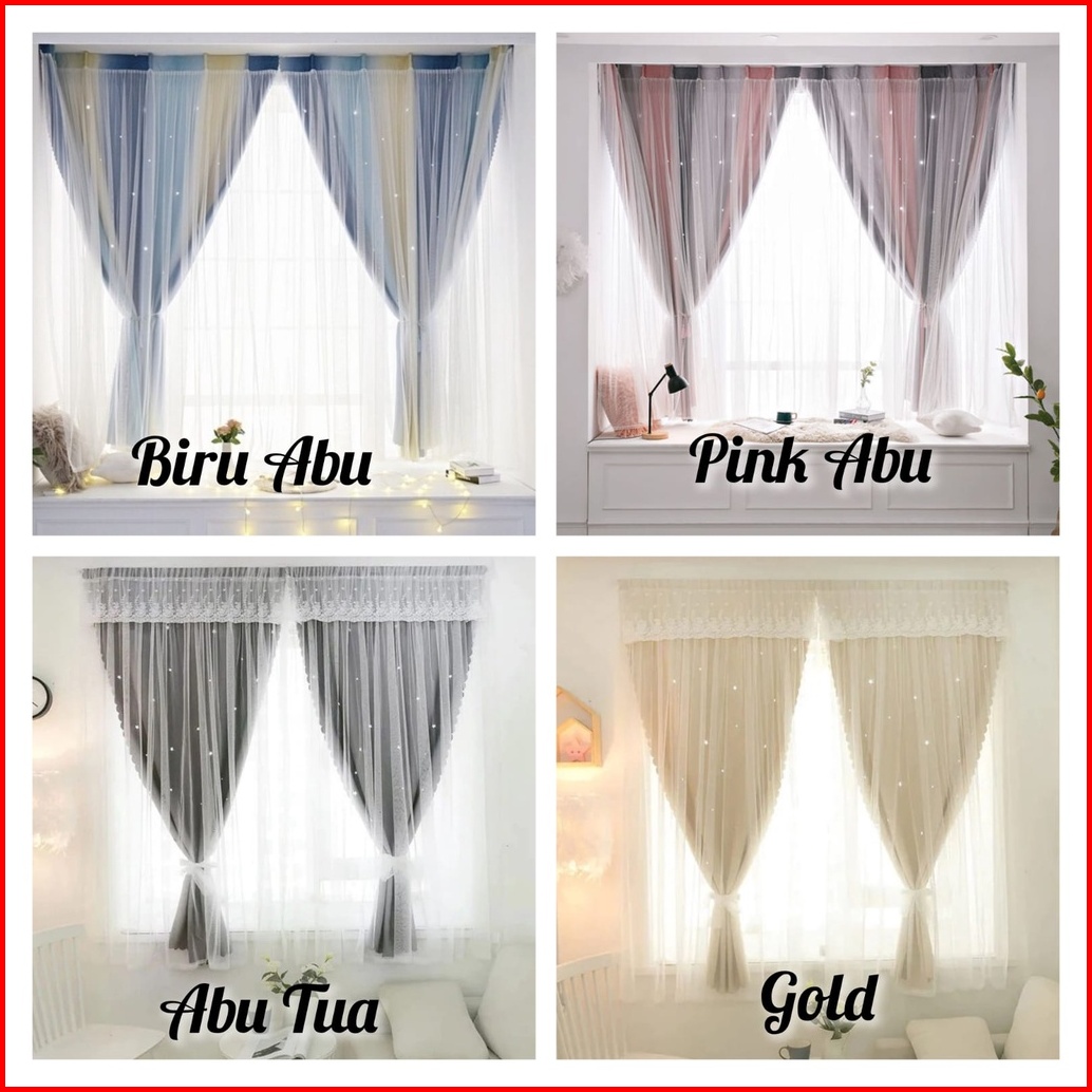 Gorden Blackout Magic Velcro Tirai Hordeng Pasang Tanpa Bor Tidak Ada Renda Poni Bagian Atas
