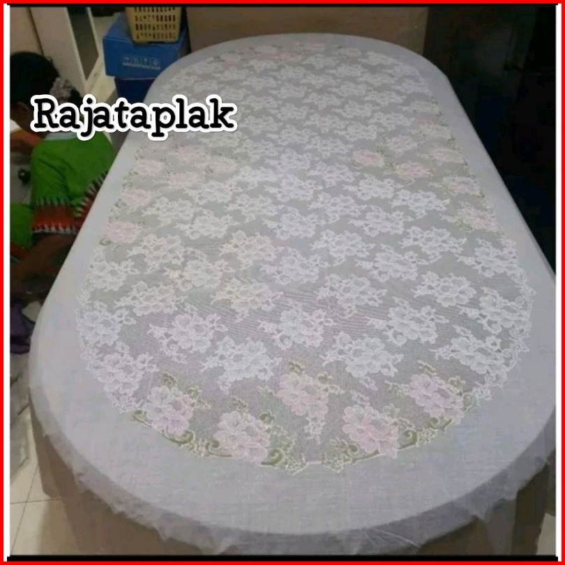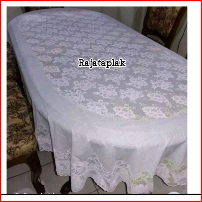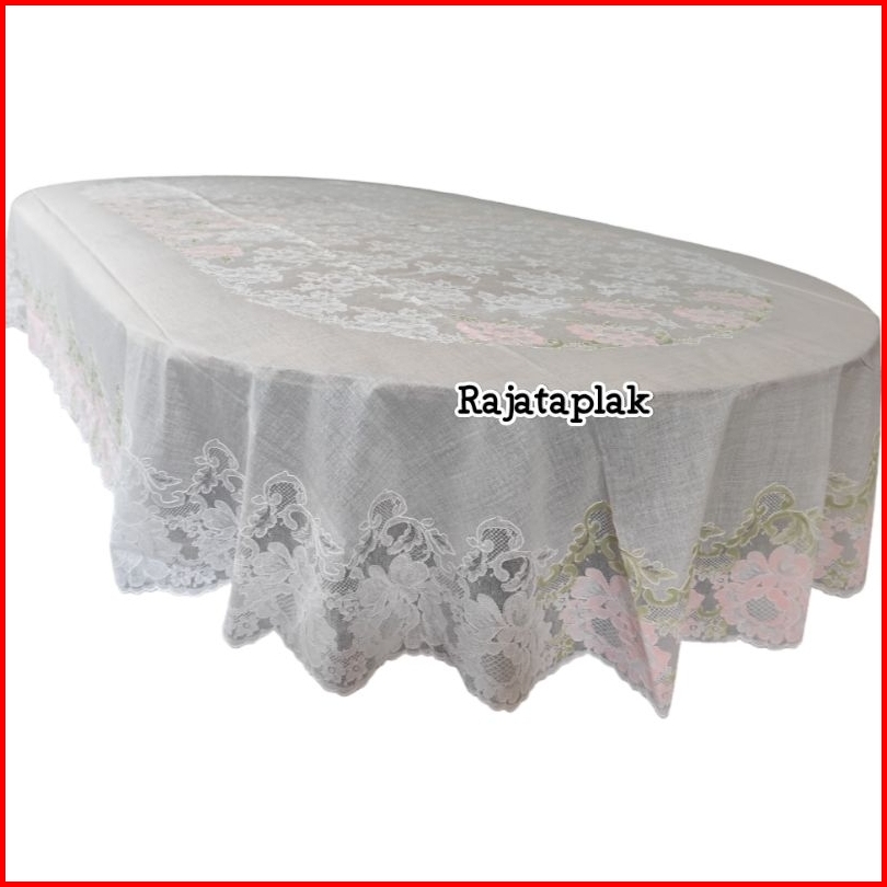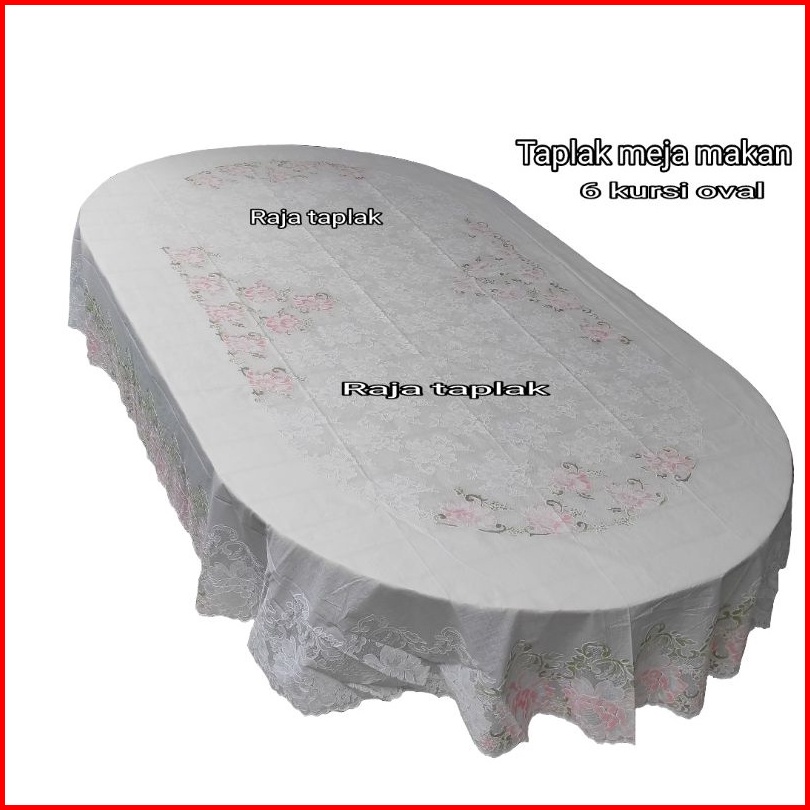Taplak Meja Makan 6 Kursi Oval Putih Tekstur Meiwa Primtemp