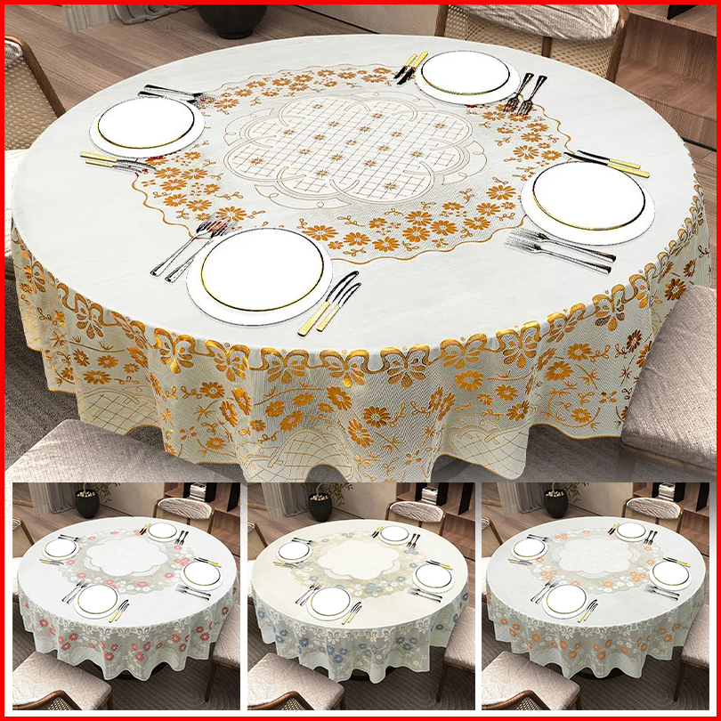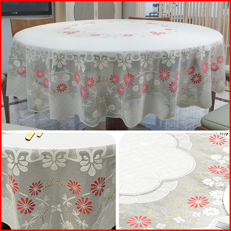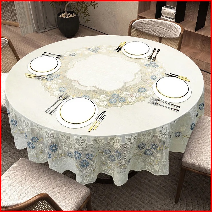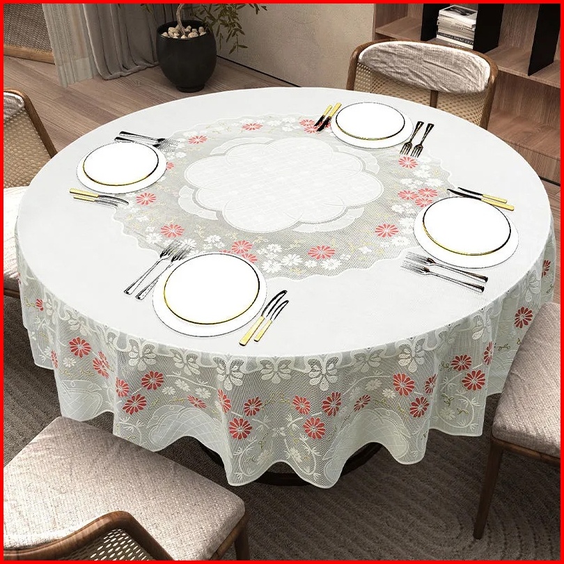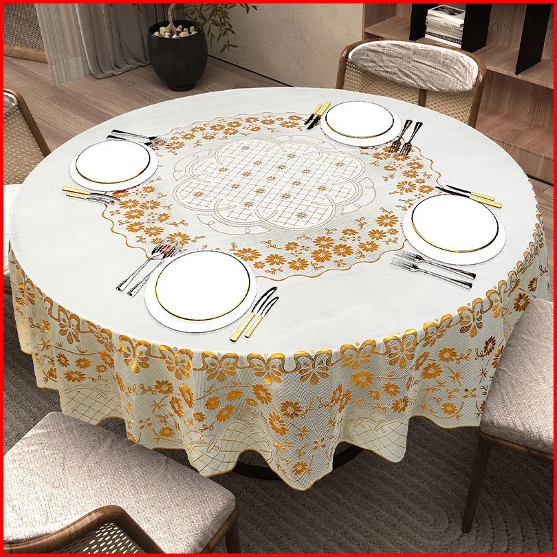 Taplak Meja Makan Bulat Premium Mewah Besar Anti Air Minyak Diameter 180cm Terpal Meja Bundar