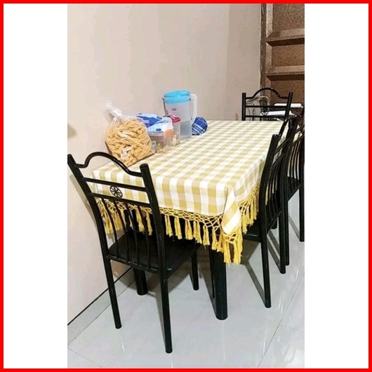 Taplak Meja Makan Persegi Ezpata Kain Tenun Motif Kotak-kotak 140x180