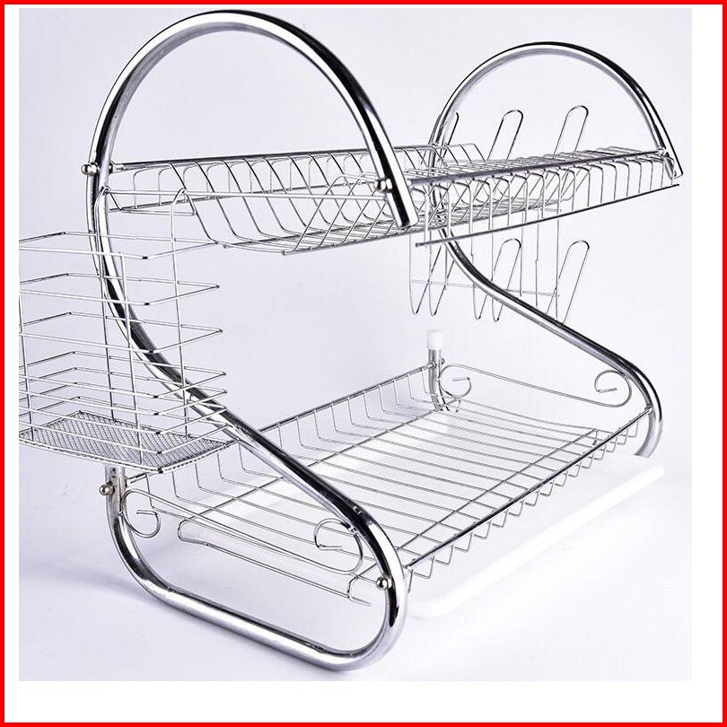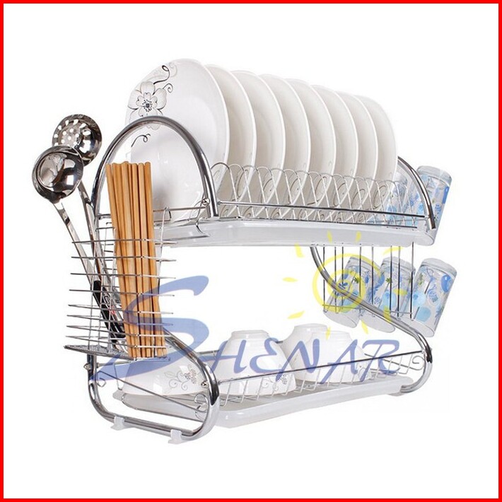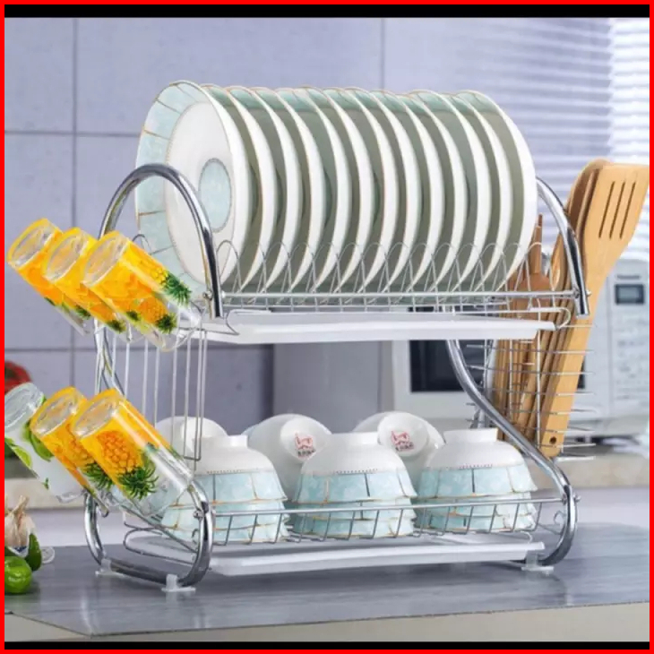 Rak Piring Stainless Minimalis 2 Susun Tingkat Peralatan Dapur Ukuran 43 X 24 X 34 Cm