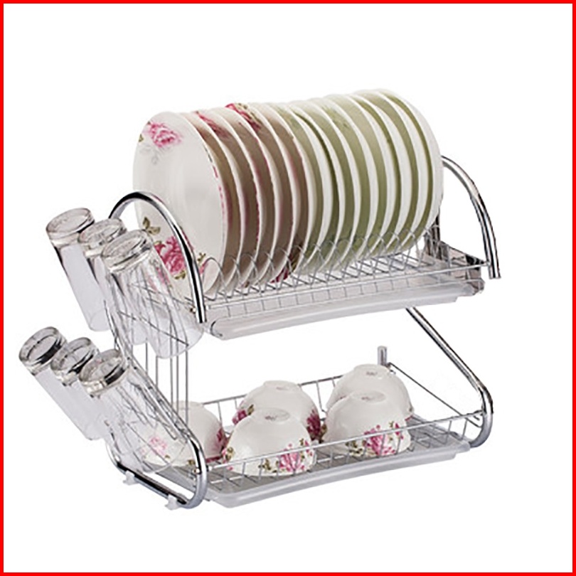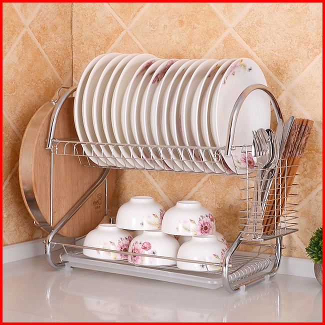 Rak Piring Dapur Stainless Steel Rak Wastafel Rak Cuci Piring Rak Pengering Dapur Minimalis 2 Susun Serbaguna