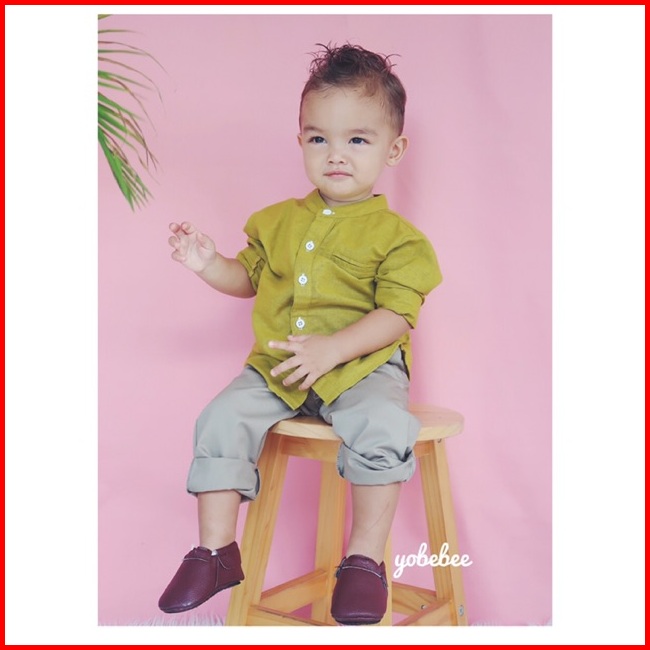 Yobebee Kemeja Linen Anak Laki Laki Tangan Panjang Usia 2 3 4 5 6 Tahun Baju Atasan Kids Polos Model Casual Formal Koko