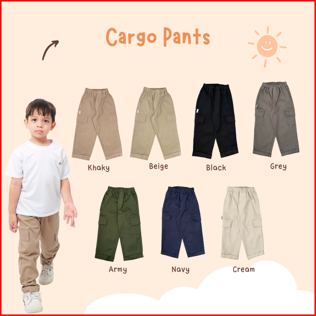 Yobebee Celana Cargo Panjang Anak Laki Laki Usia 2 4 6 8 10 Tahun Celana Kargo Saku Kids Pants Model Casual Trend Anak C