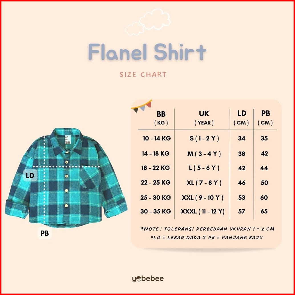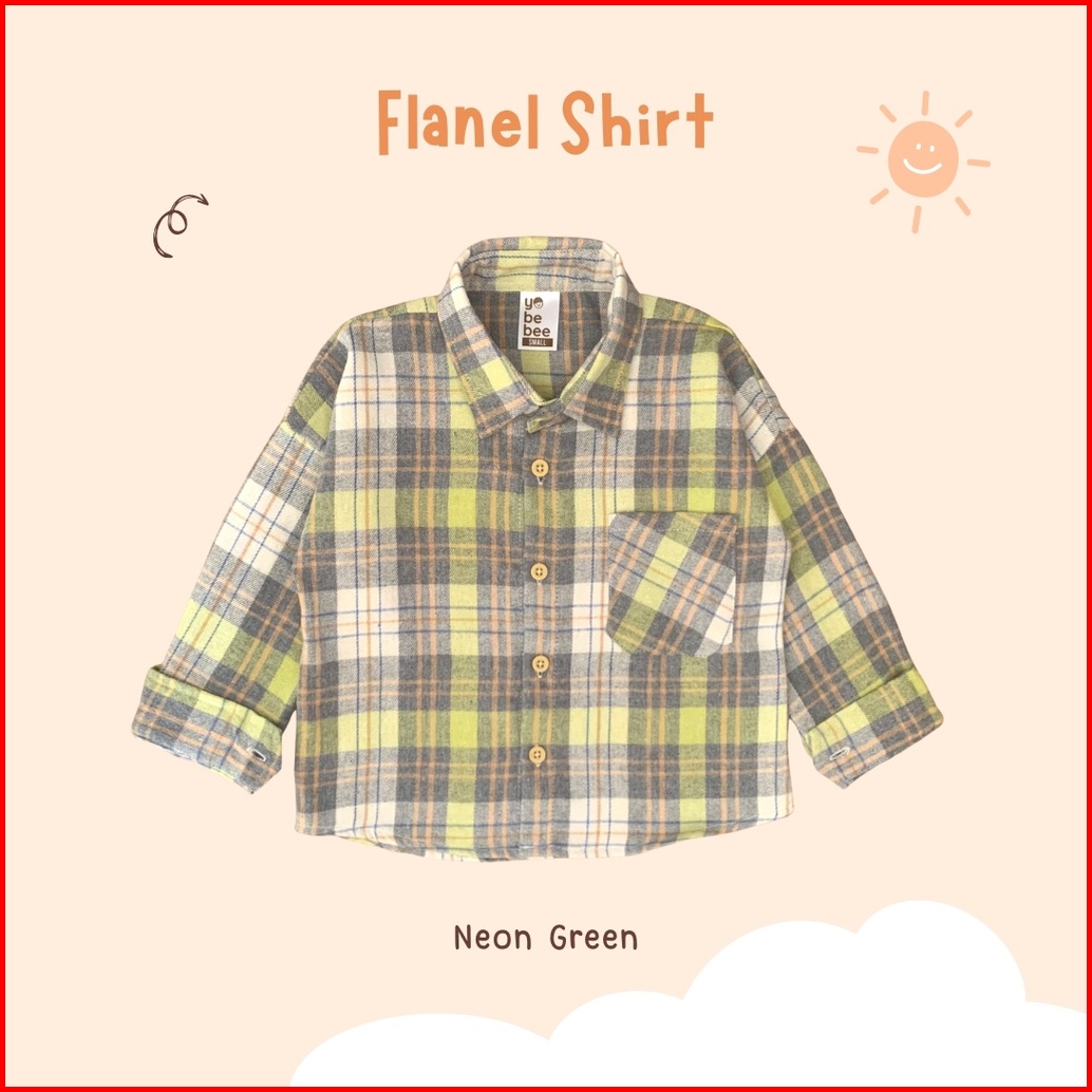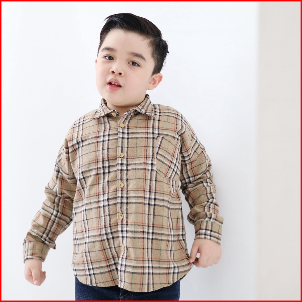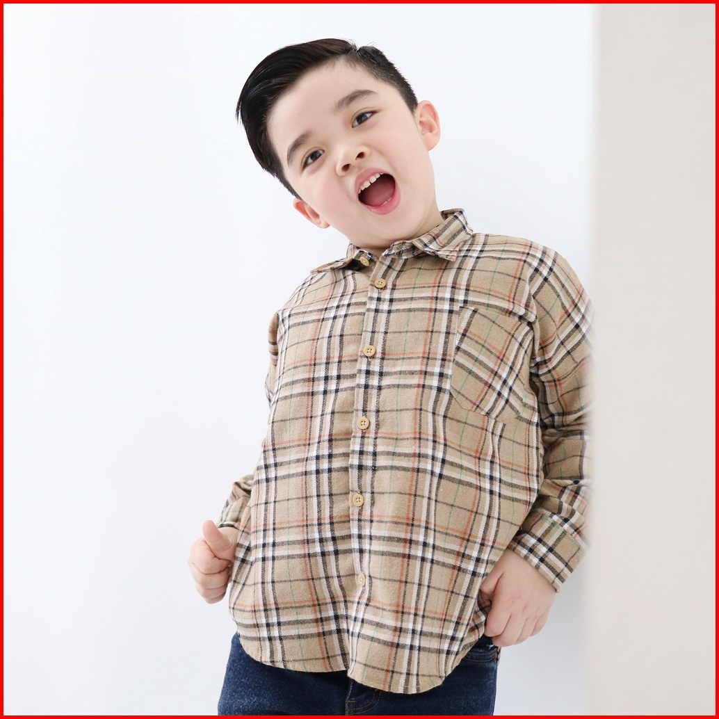 Yobebee Kemeja Flanel Anak Tangan Panjang Usia 2 3 4 6 8 Tahun Baju Atasan Kids Motif Kotak Shirt Katun Model Casual San