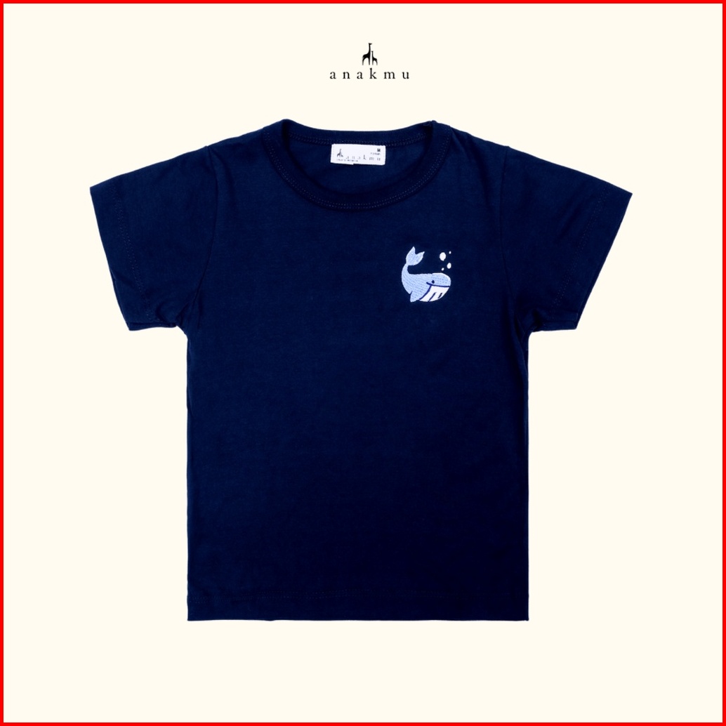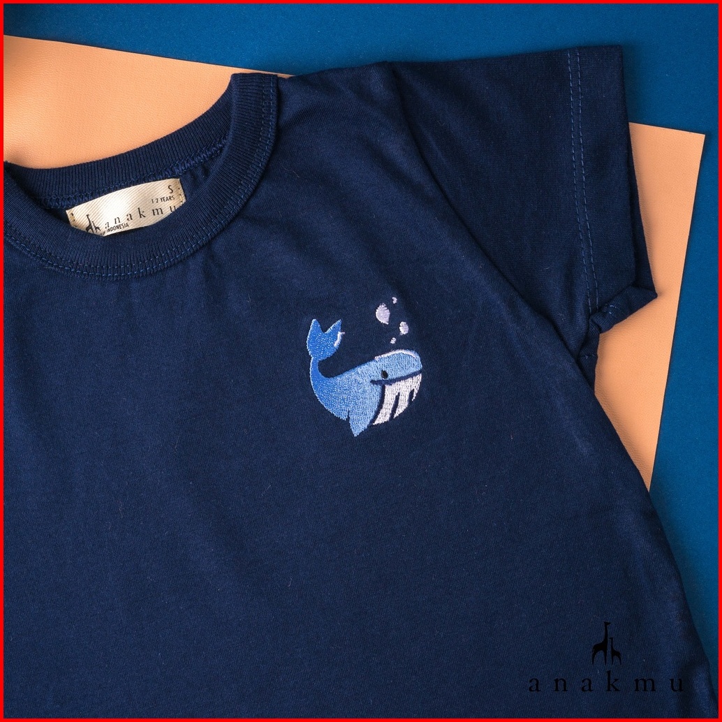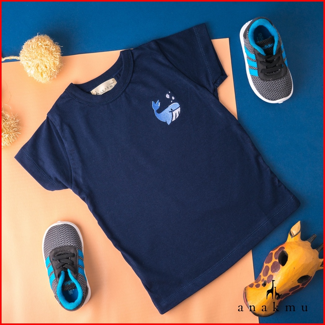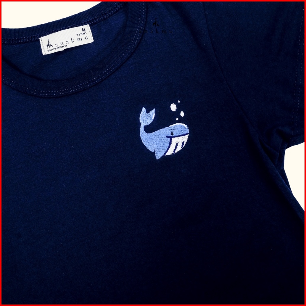 Anakmu Kaos Anak Katun 1-5 Tahun Bordir Ikan Paus Whale Biru Navy T-shirt