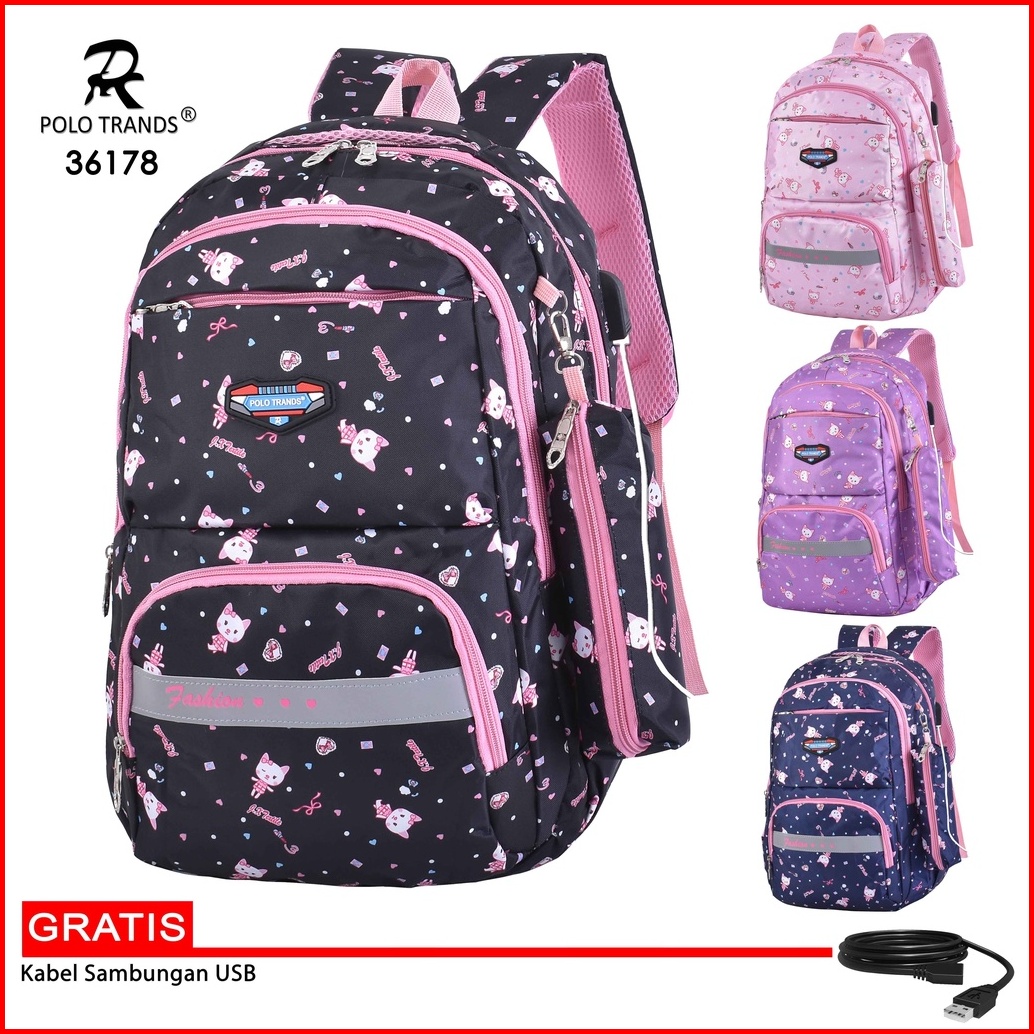 Polo Trands Tas Sekolah Anak Perempuan Gratis Pouch 36177 36178 Tas Anak