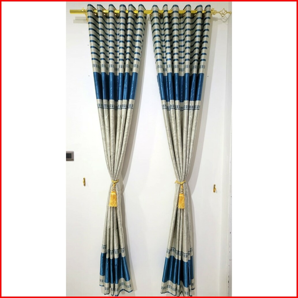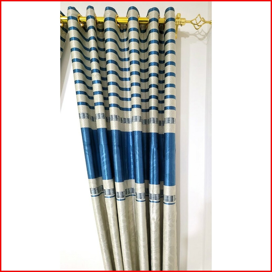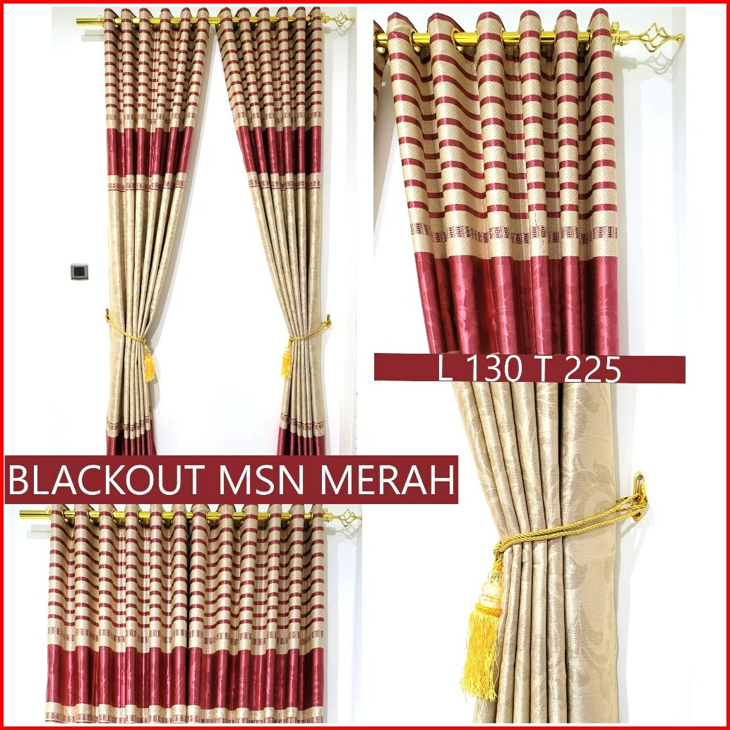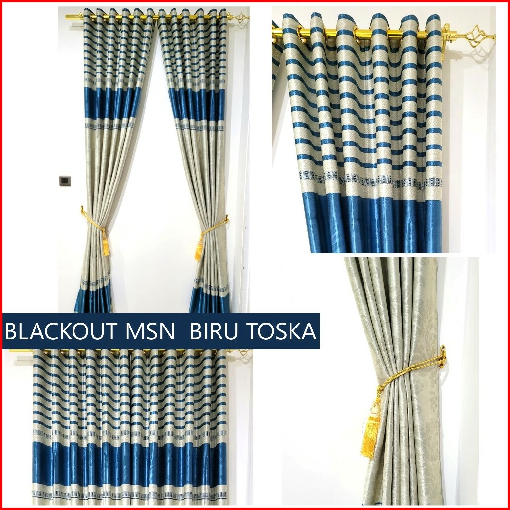 1 Pcs Gorden Msn Blackout Garis Tebal Tinggi 225 Lbr 130 Biru Toska Dan Merah Cantik- Gorden Jendela Kamar Gordeng Pintu