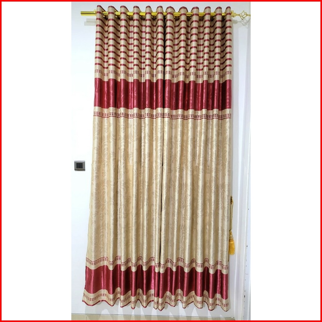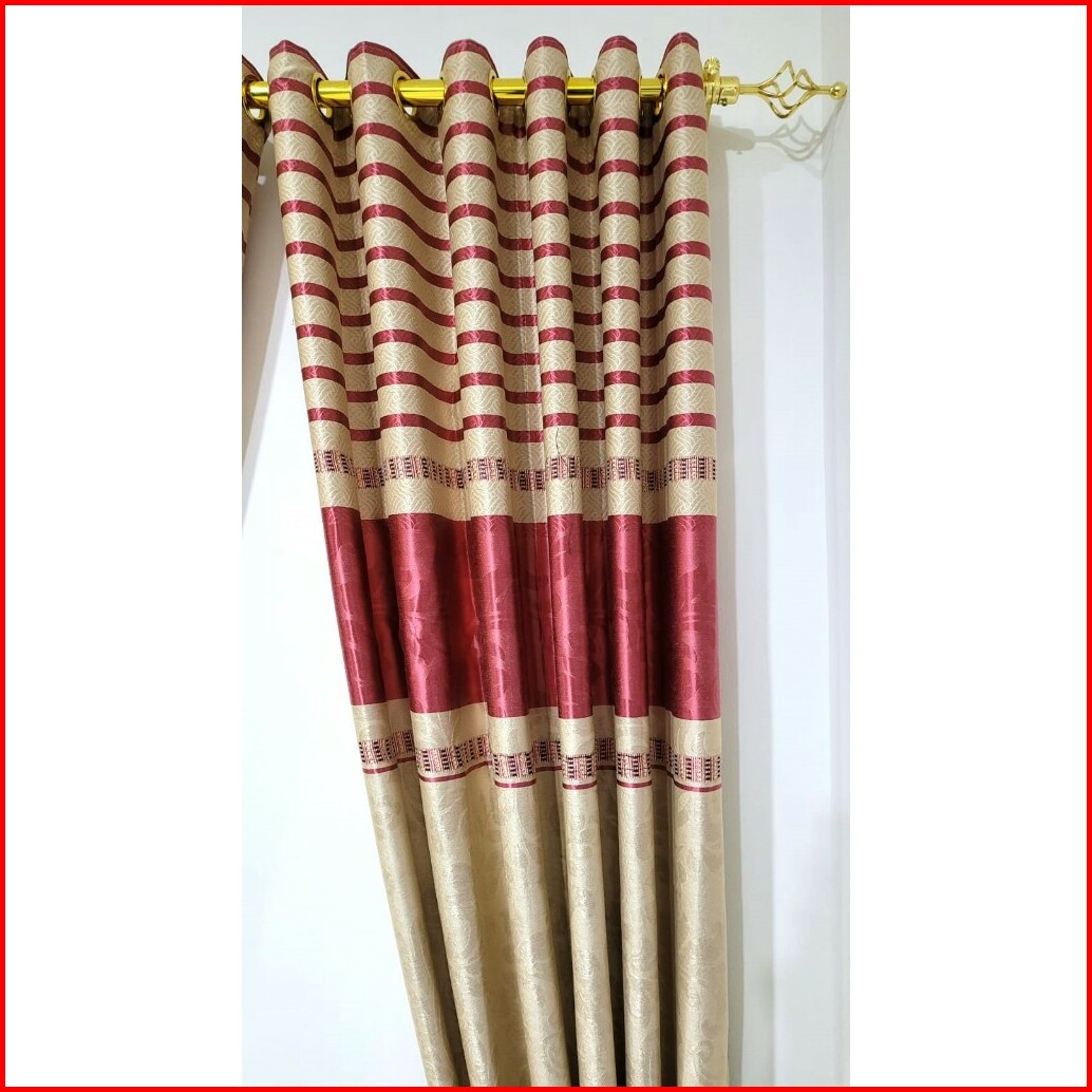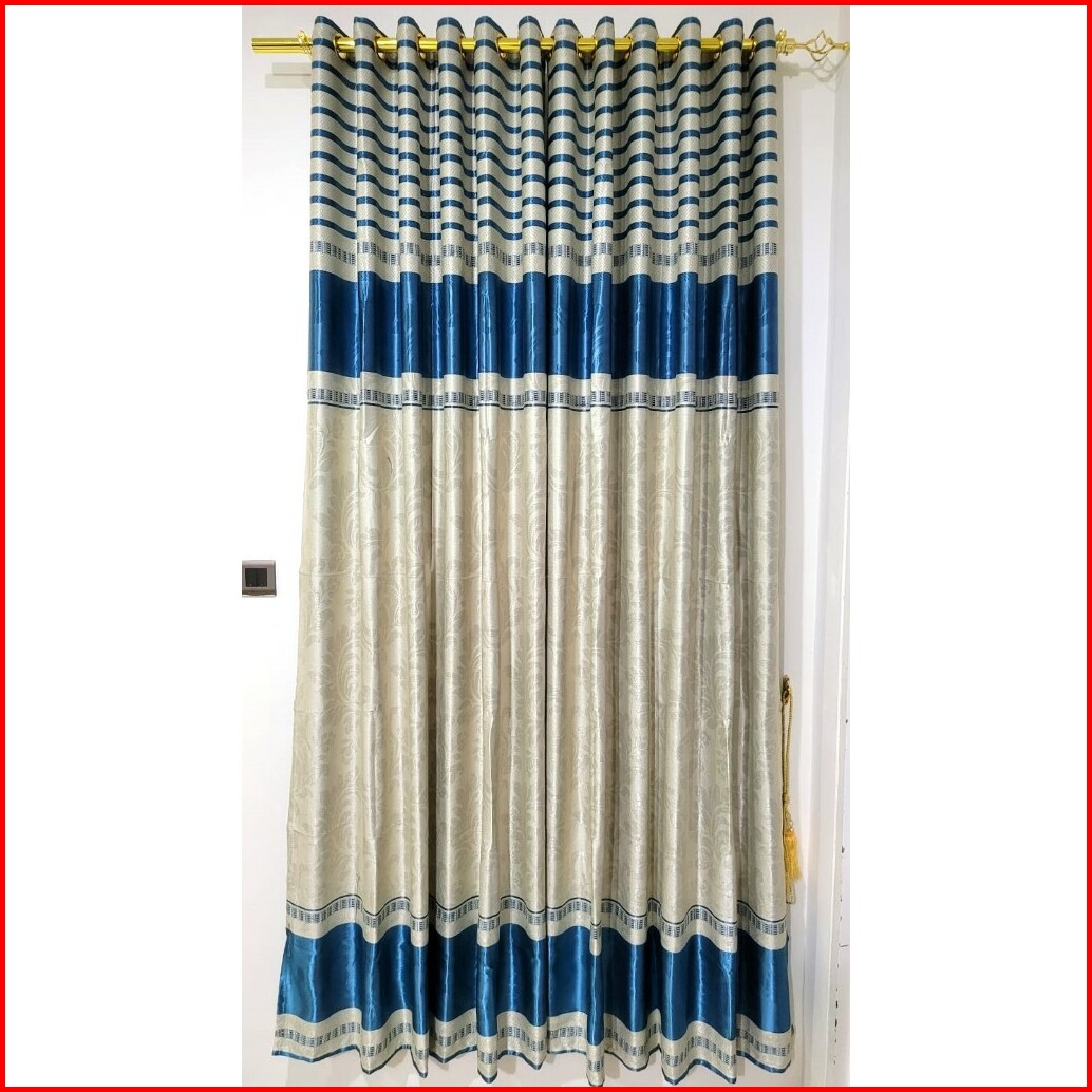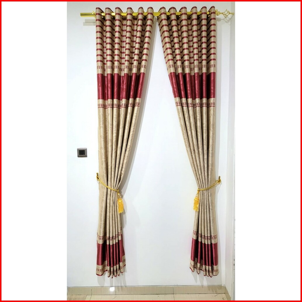 1 Pcs Gorden Msn Blackout Garis Tebal Tinggi 225 Lbr 130 Biru Toska Dan Merah Cantik- Gorden Jendela Kamar Gordeng Pintu