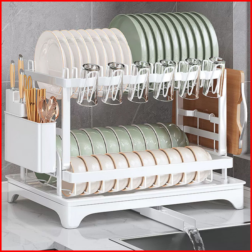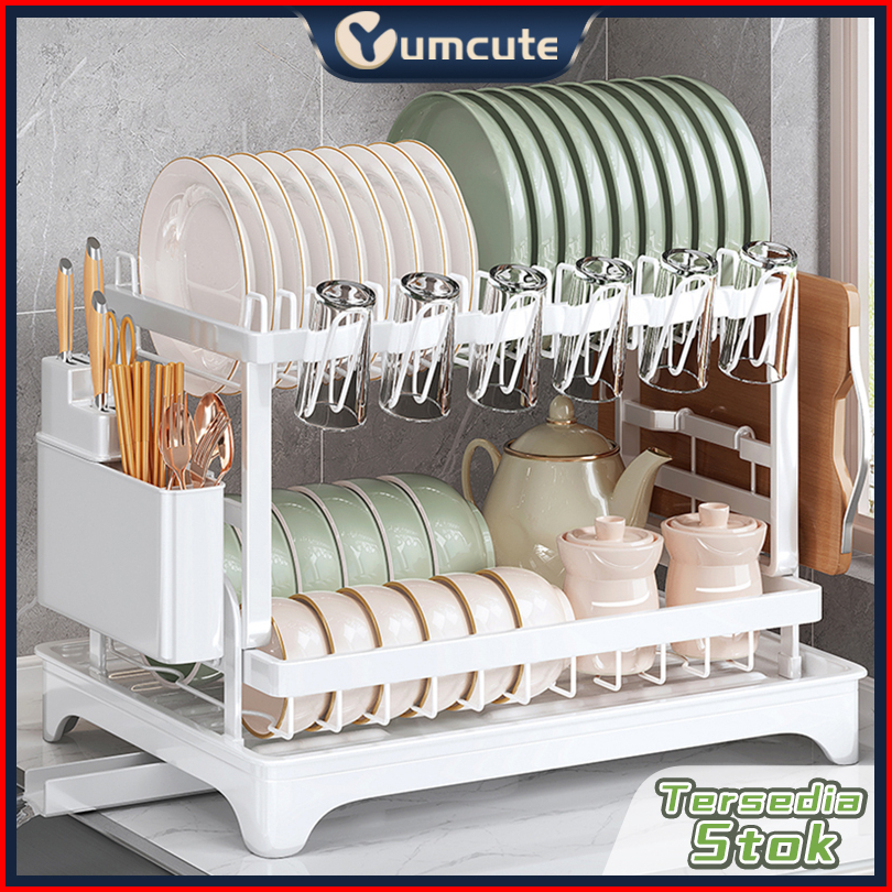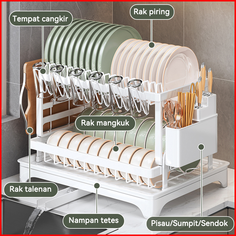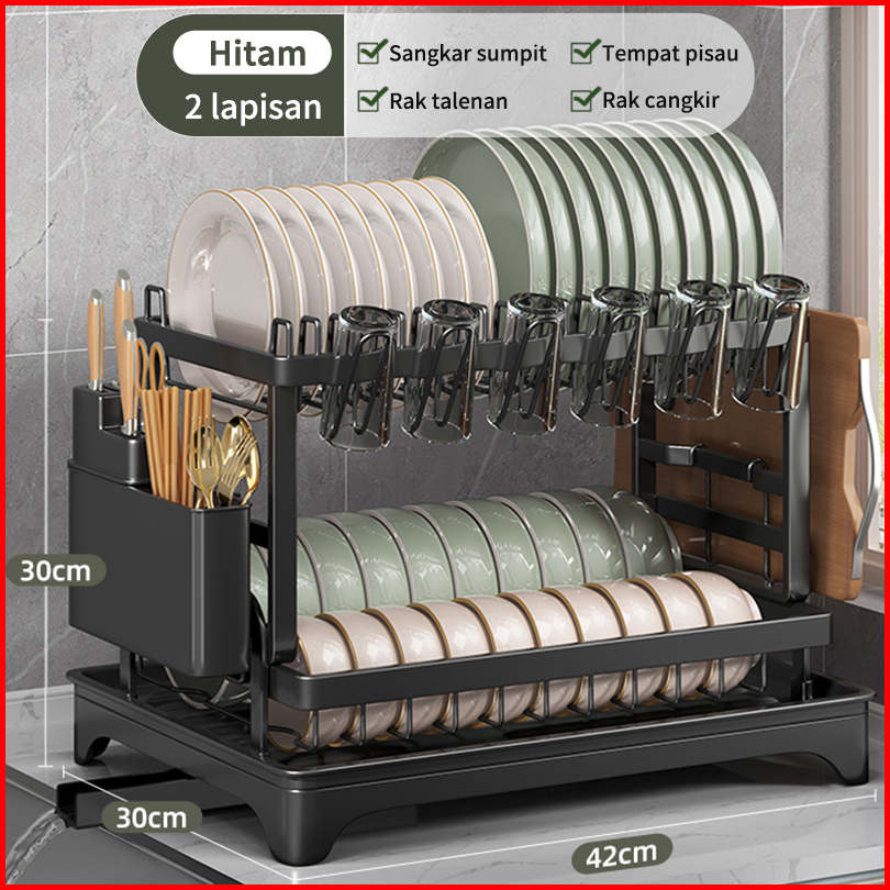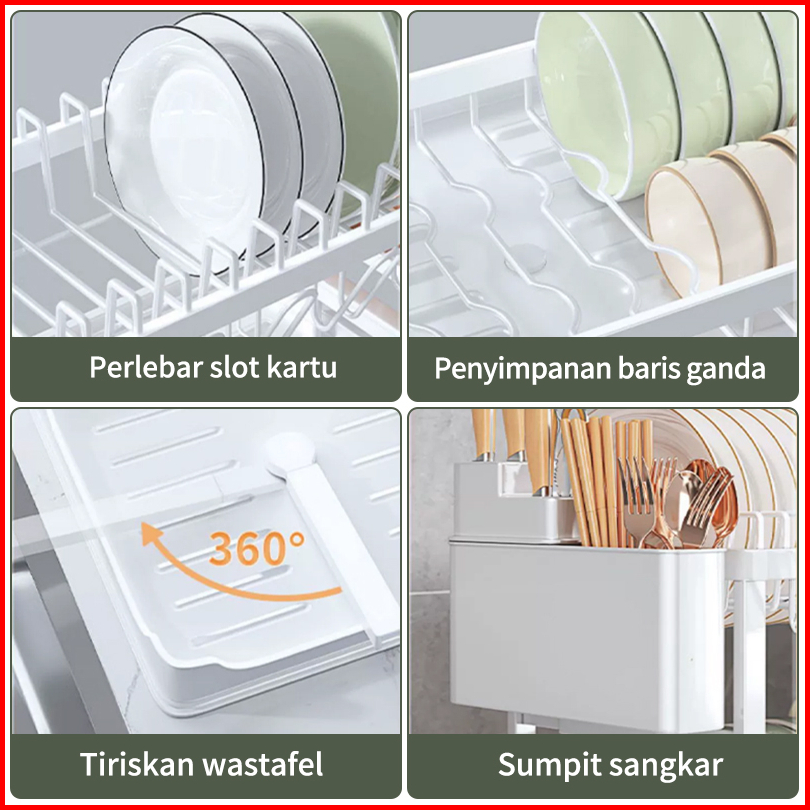 Rak Penyimpanan Stainless Steel Penyelenggara Dapur Baki Peniris Otomatis Sinki Rak Pinggan Mangkuk Rak Dapur