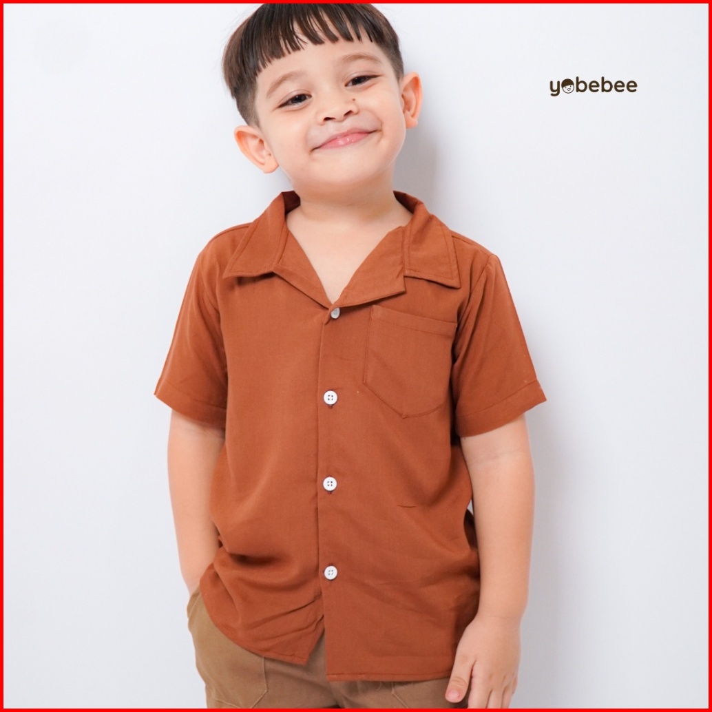 Yobebee Taqi Shirt Kemeja Rayon Anak Laki Laki Usia 9 10 11 12 Tahun Baju Atasan Tangan Pendek Polos Boy Shirt Casual Sa