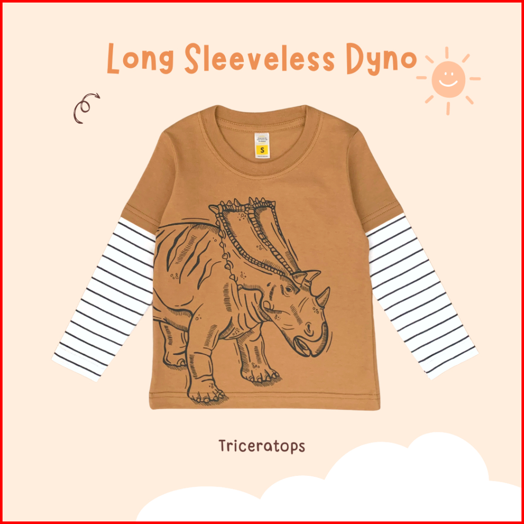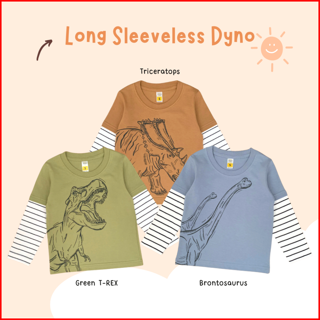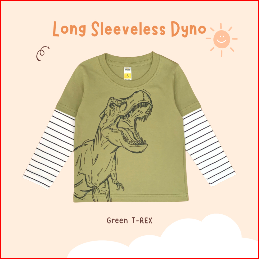 Yobebee Kaos Panjang Dyno Anak Laki Laki Usia 2 4 6 8 10 Tahun Baju Atasan Model Tangan Stripe Salur Kids Motif Dinosaur