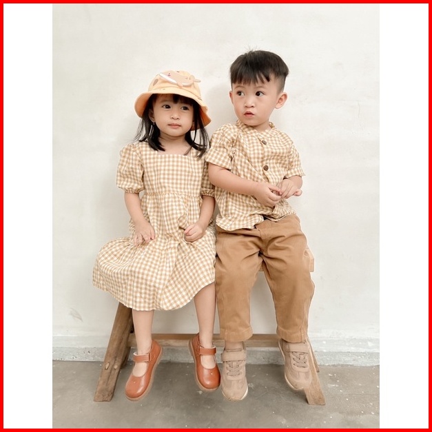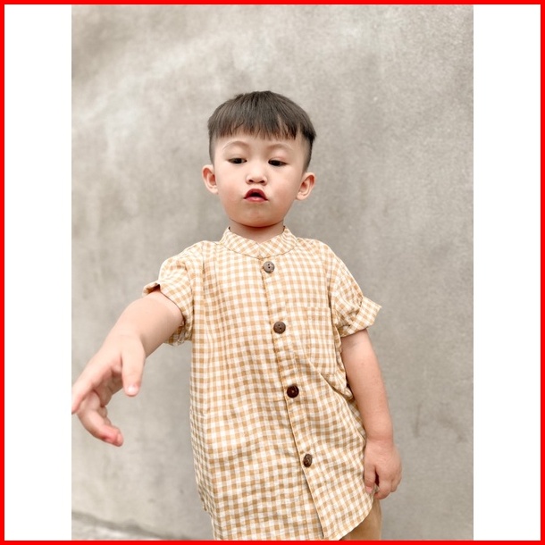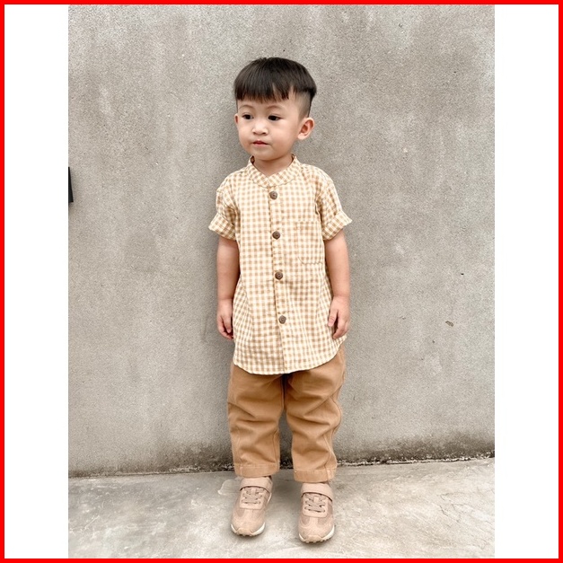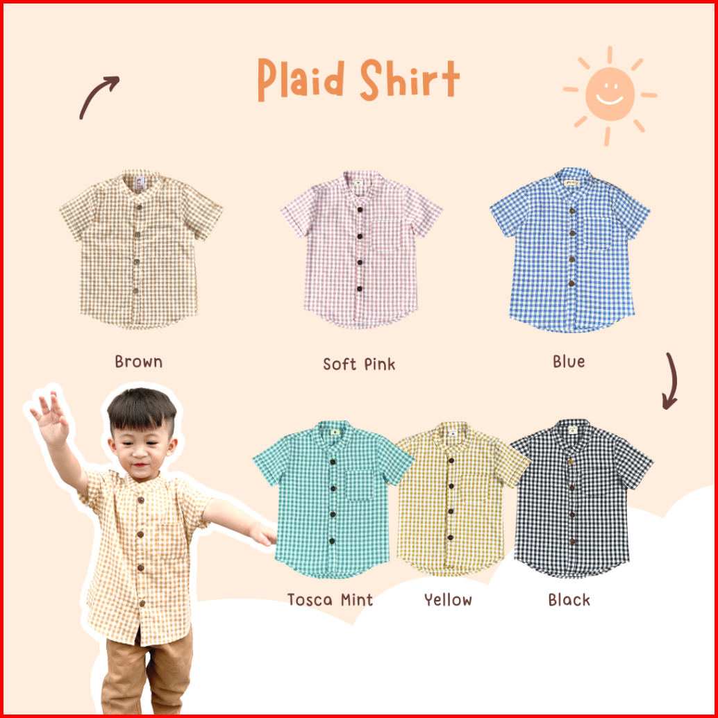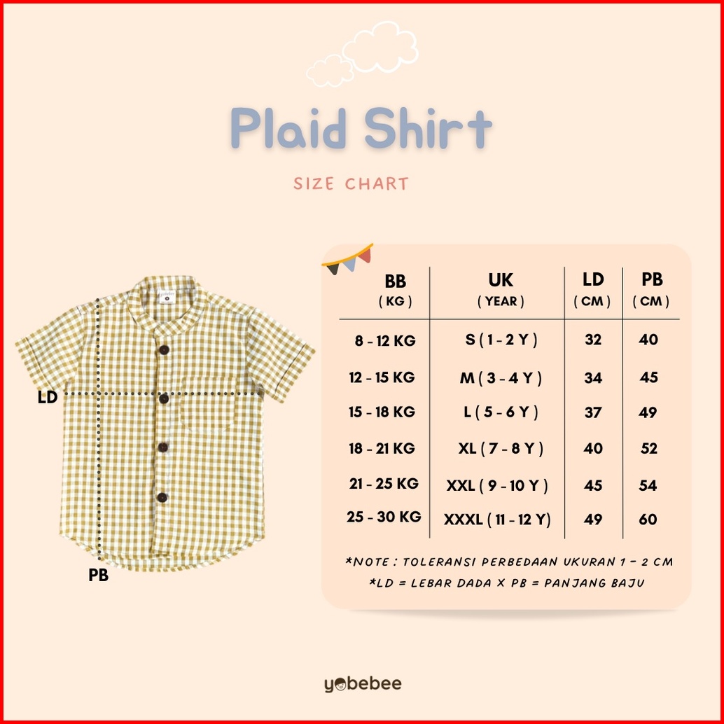 Yobebee Kemeja Katun Kotak Tangan Pendek Anak Laki Laki Usia 2 4 6 8 10 12 Tahun Baju Atasan Kids Casual Kemeja Kerah Ch