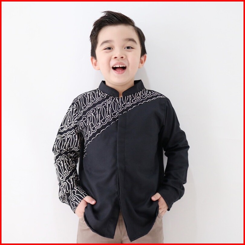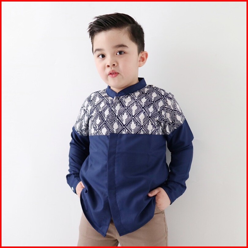 Yobebee Kemeja Batik Tangan Panjang Anak Laki Laki Usia 2 4 6 8 10 12 Tahun Baju Atasan Kids Casual Formal Katun Kemeja