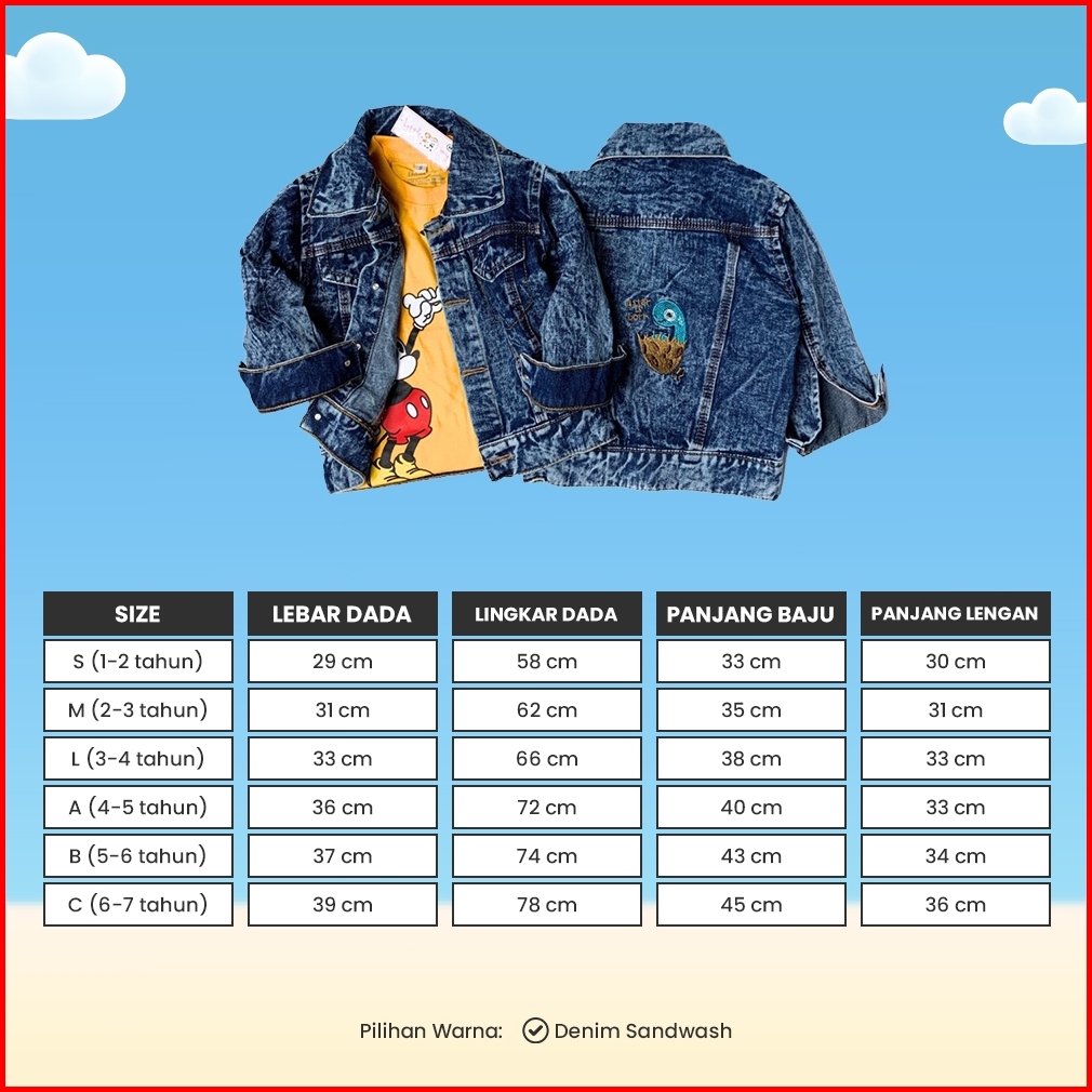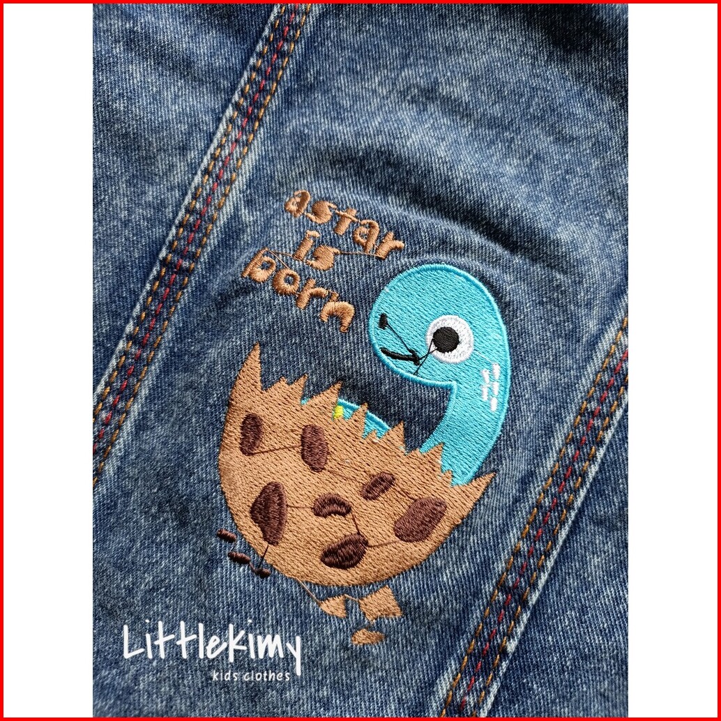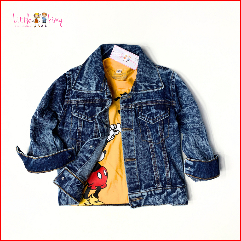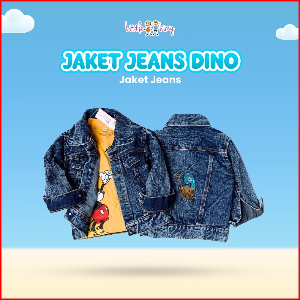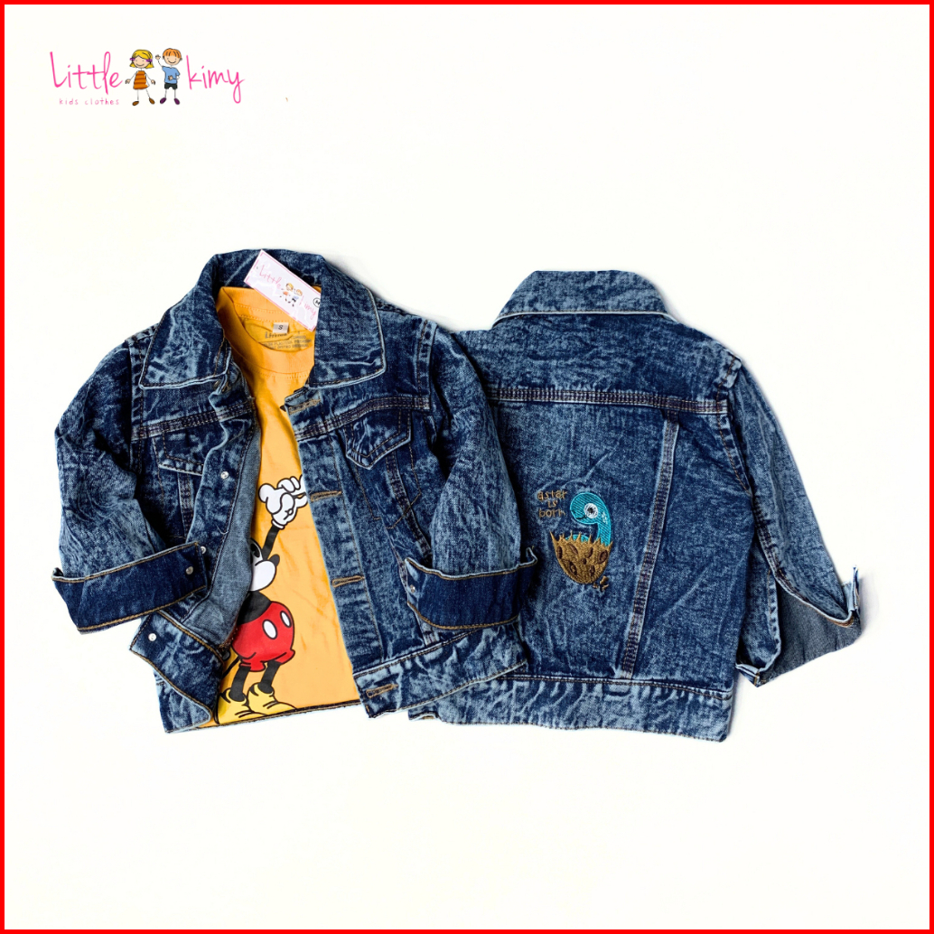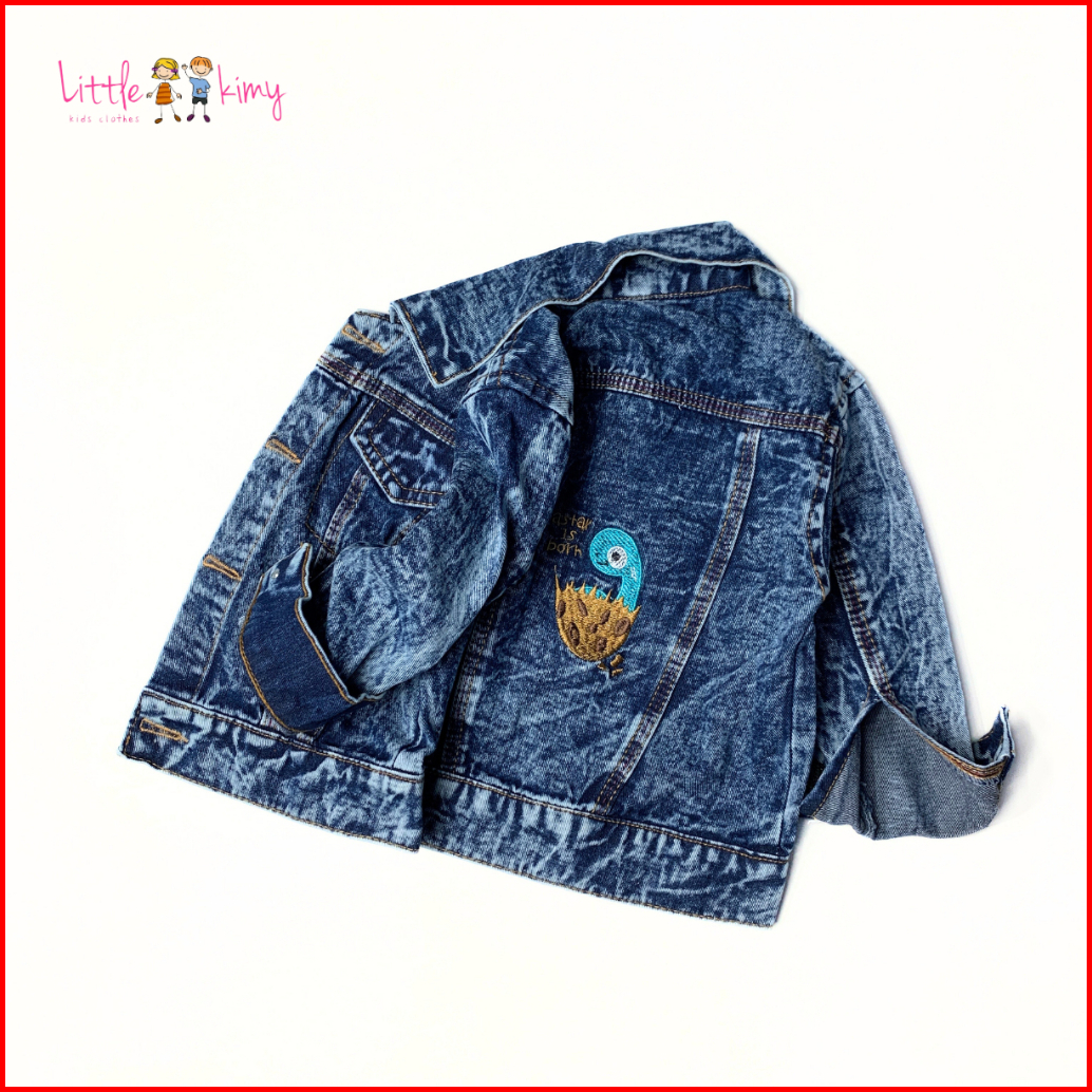 Littlekimy Dino - Jaket Jeans Double Bio-bleaching Jacket Anak Perempuan Laki Laki Usia 1-7 Tahun