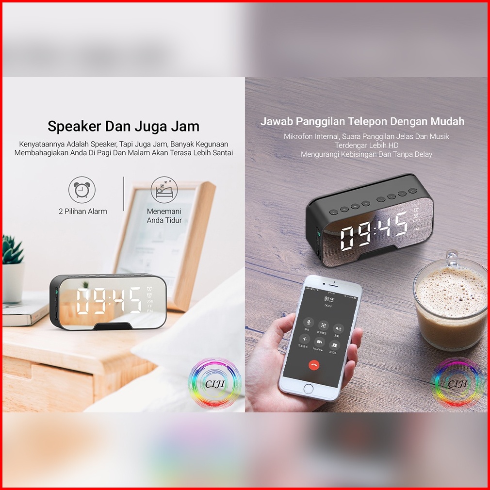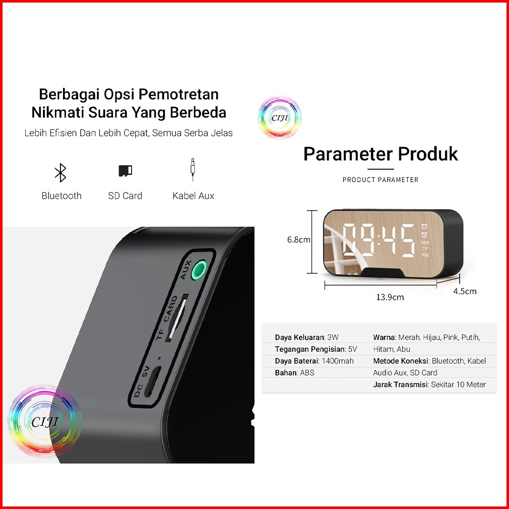 Ciji Speaker Bluetooth Wireless Multifungsi Alarm Clock Digital Radio Fm Smart Chip Portable