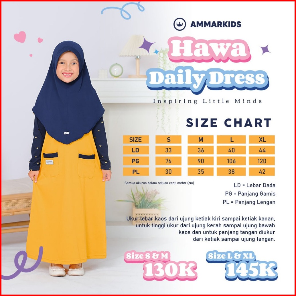Ammarkids - Dress Gamis Baju Tunik Muslim Anak Perempuan Katun Premium