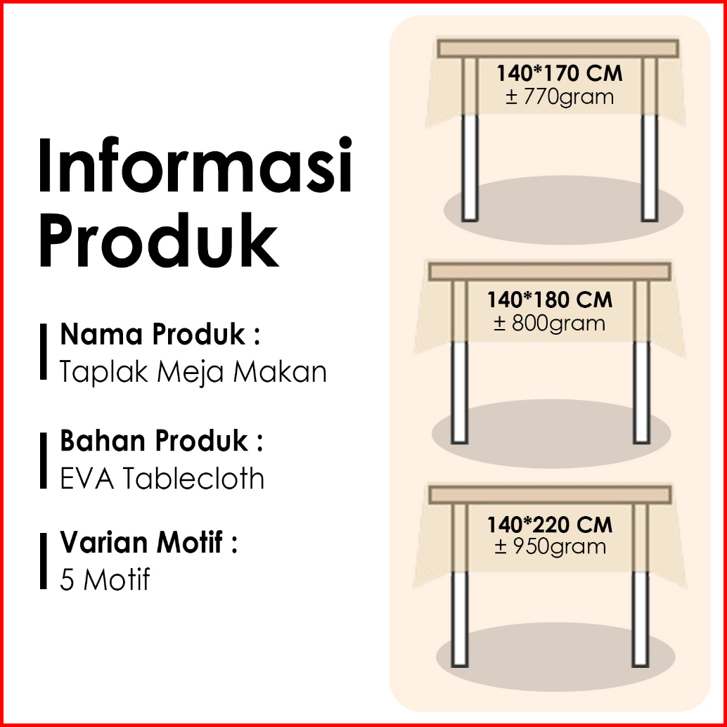 Taplak Meja Makan Berkualitas Anti Gores Anti Air Anti Panas 140cmx180 140cmx220cm