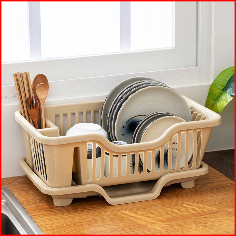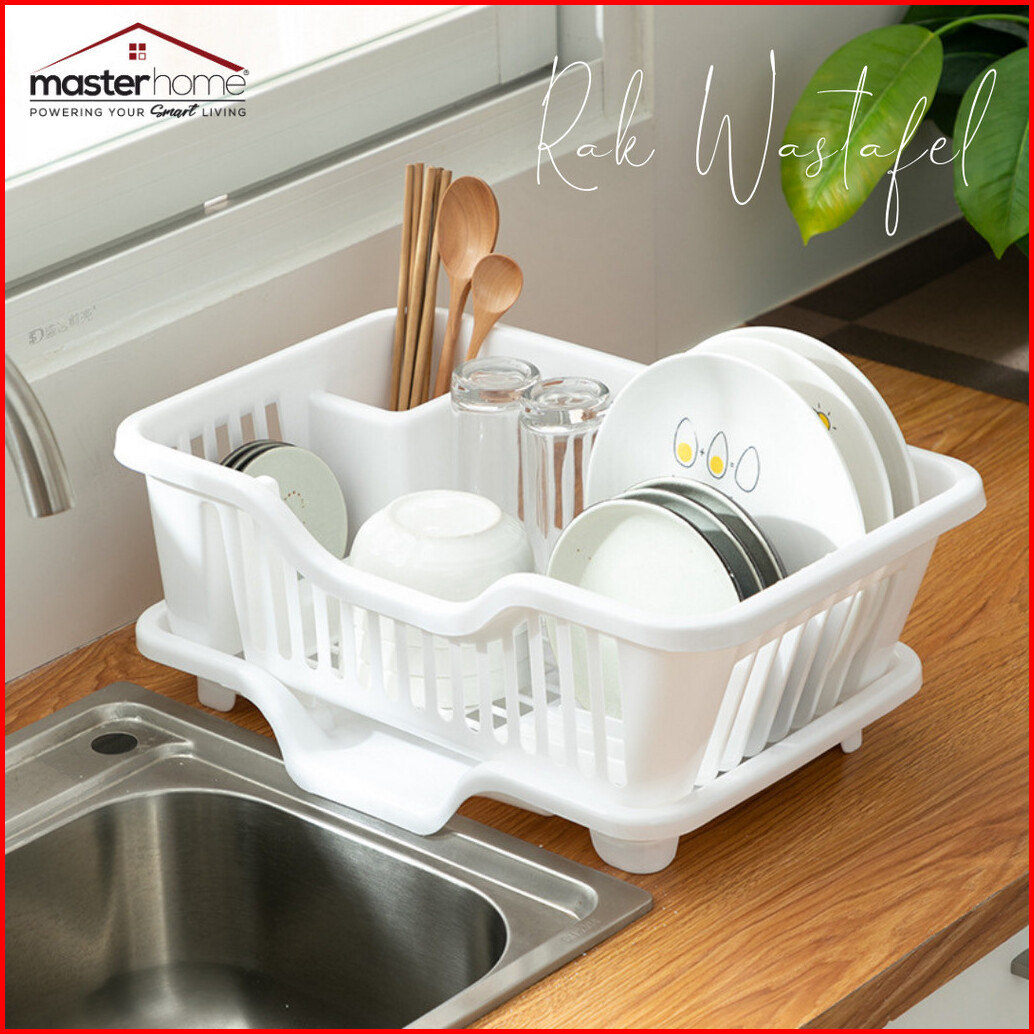 Masterhome Rak Pengering Piring Buah Sayur Dengan Tatakan Air Rak Pengering Plastik Rak Piring Mangkok Sendok Anti Pecah
