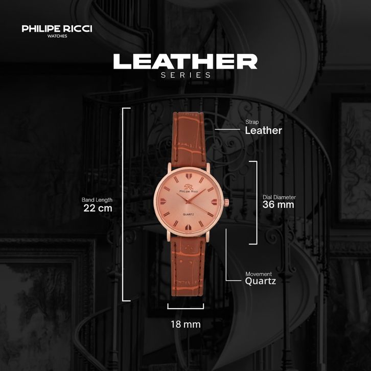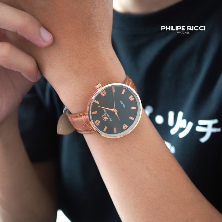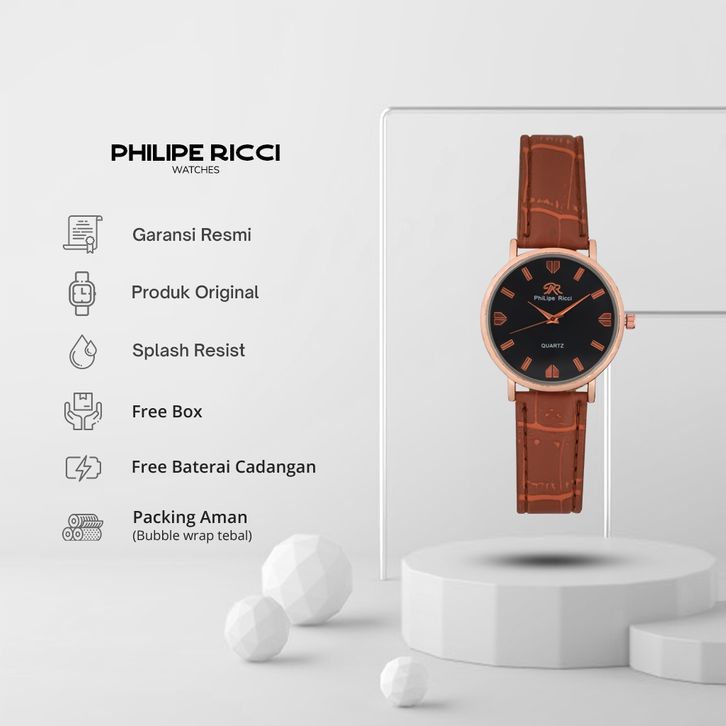 PhiLipe Ricci Jam Tangan Pria Original Diameter Bulat Strap Tali Kulit Terbaru Model Kasual LKOB4 Leather Free Box