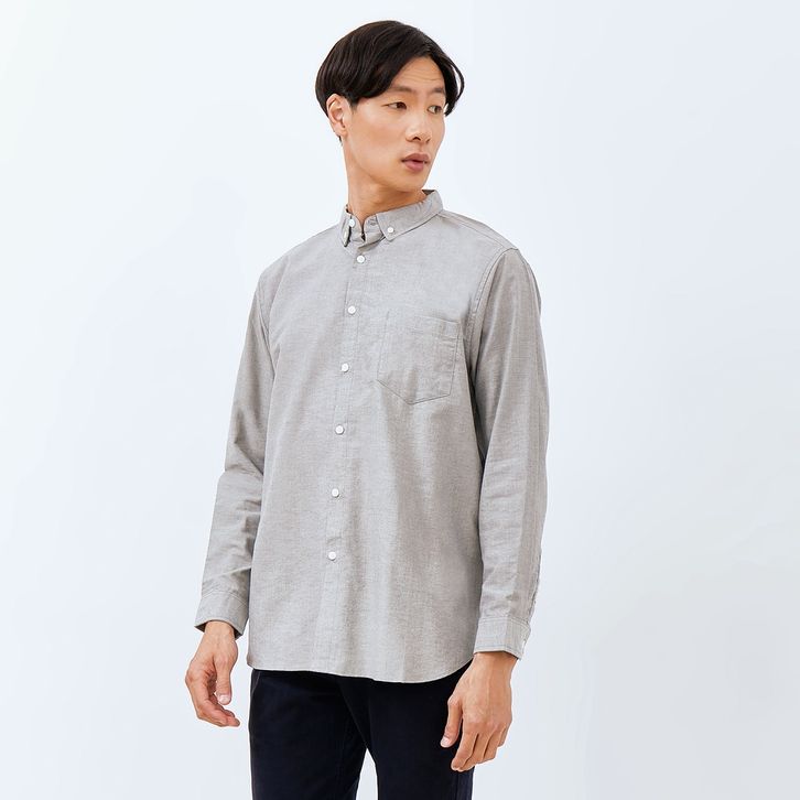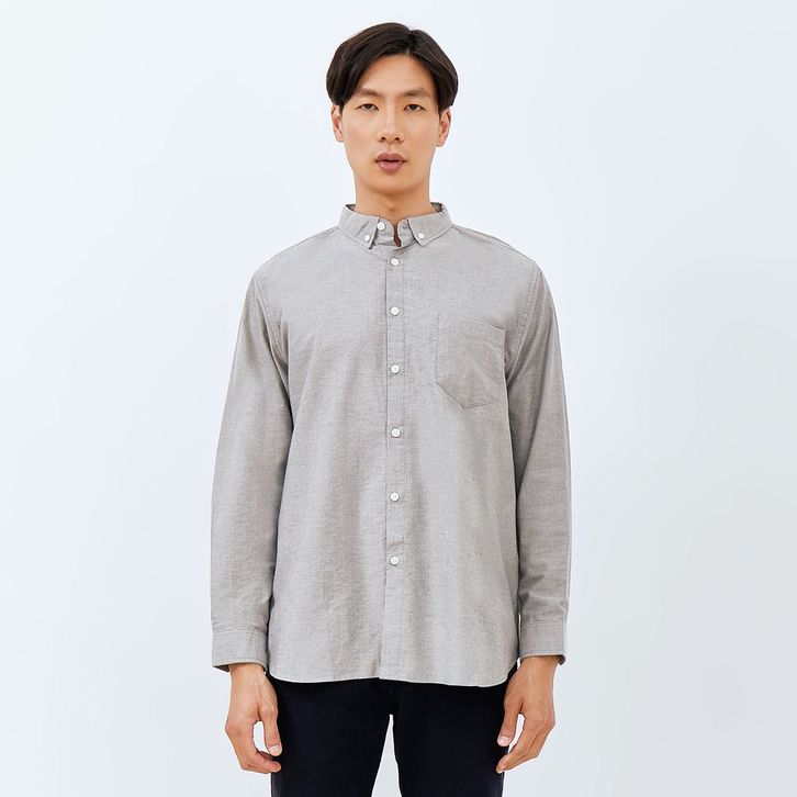 M231 Kemeja Pria Basic Polos Oxford Panjang Abu 1456B