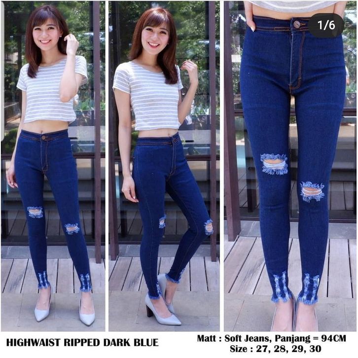 Celana Panjang Wanita Higt Waist Sobek / Jeans Hw Sobek / Jins Sobek Kekinian / Jeans Sobek Hitam