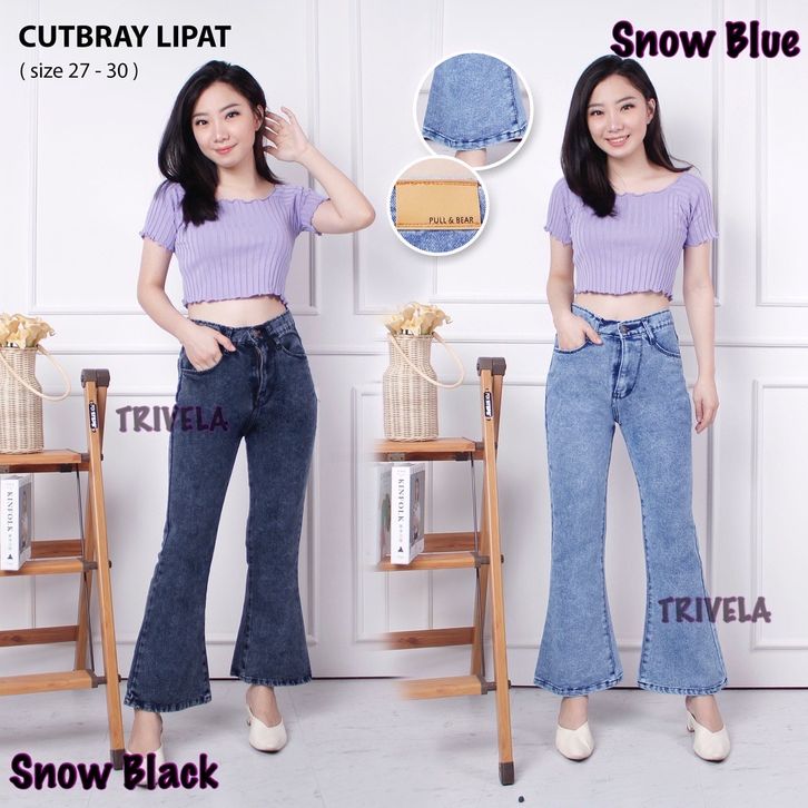 TRIVELA - Boyfriend Jeans Black White Cutbray /Avici Cutbray Boyfie 27-34 Terlaris new