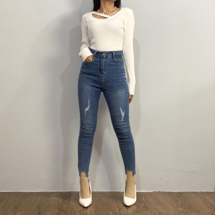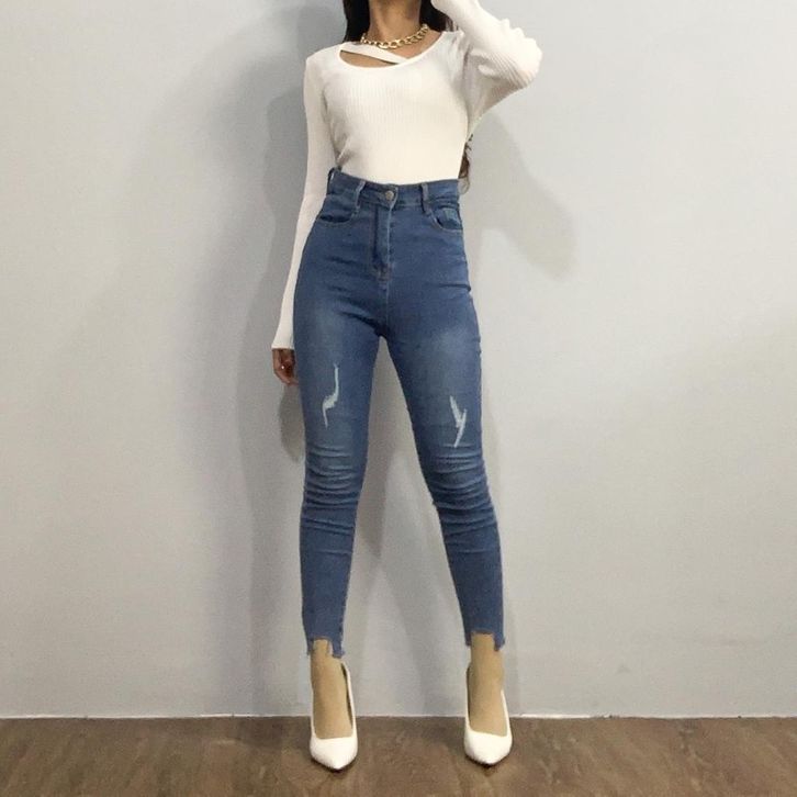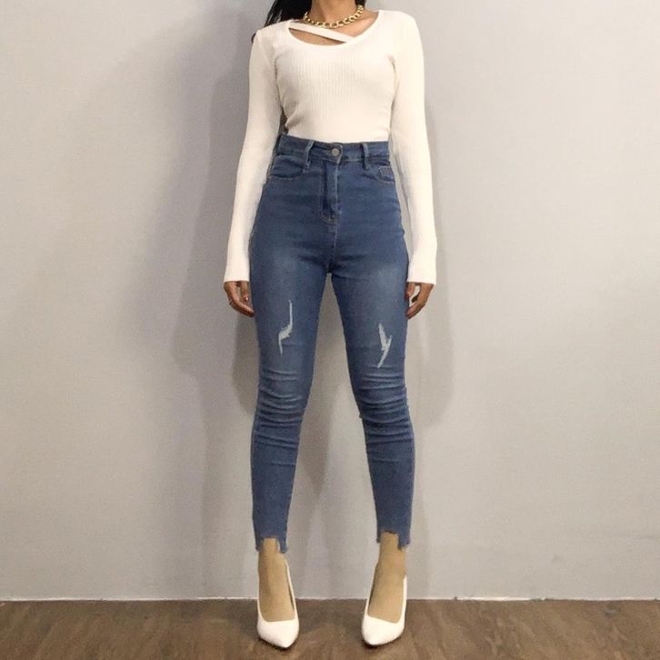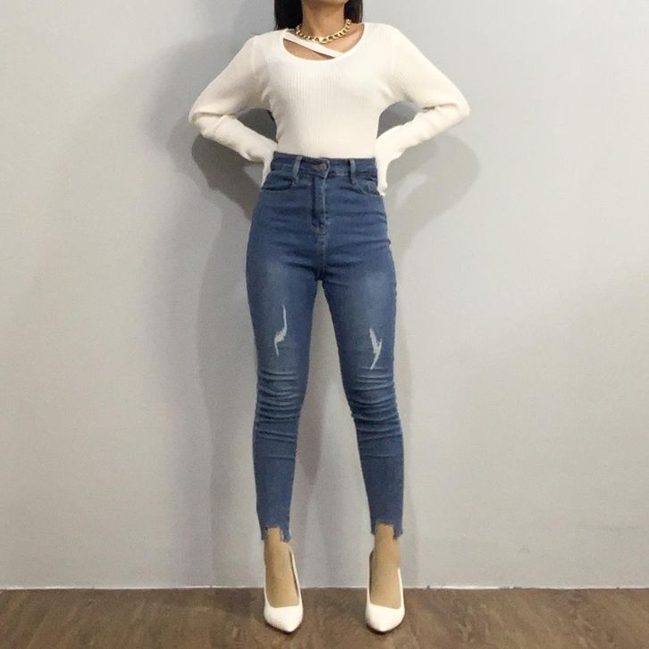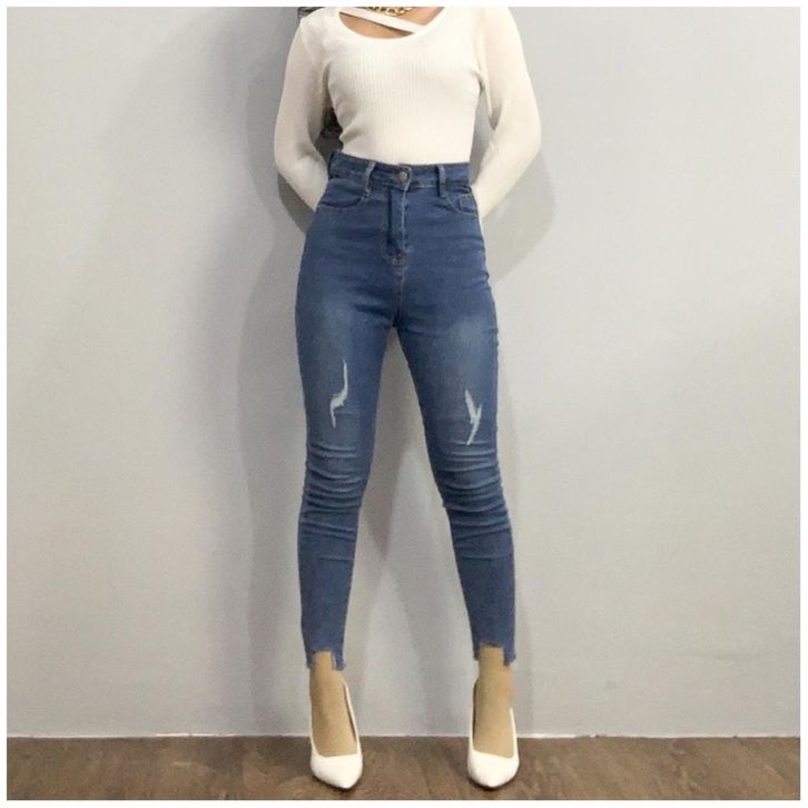 LUXE.DLABEL - E44 Jeans Celana panjang Highwaist wanita Jeans premium Jeans wanita polos ripped