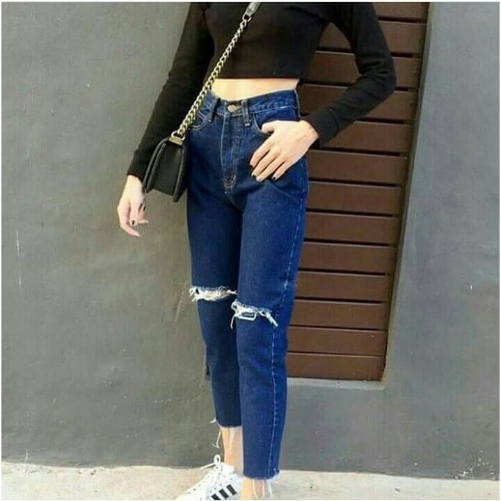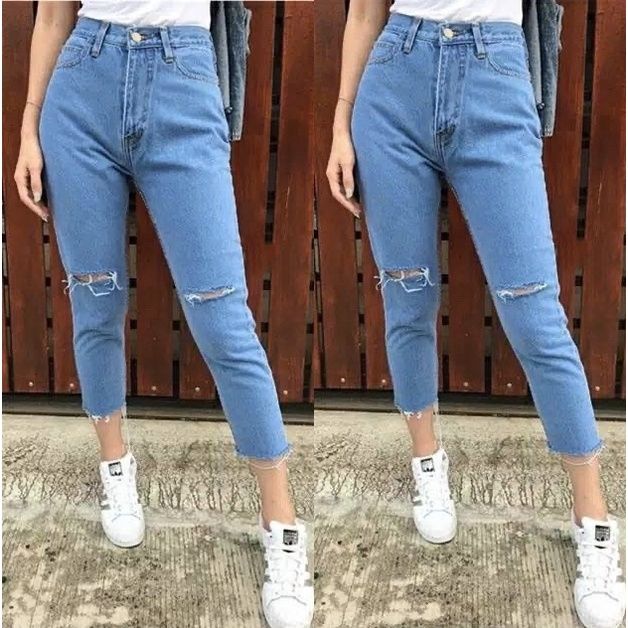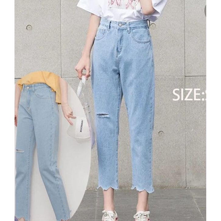 CELANA BOYFRIEND WANITA SOBEK GARIS CELANA PANJANG JEANS SOBEK GARIS Terlaris new