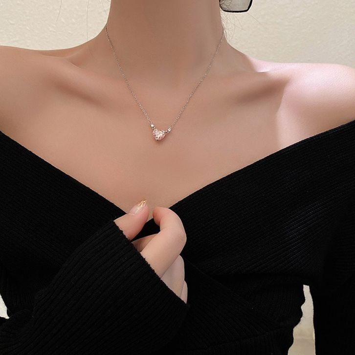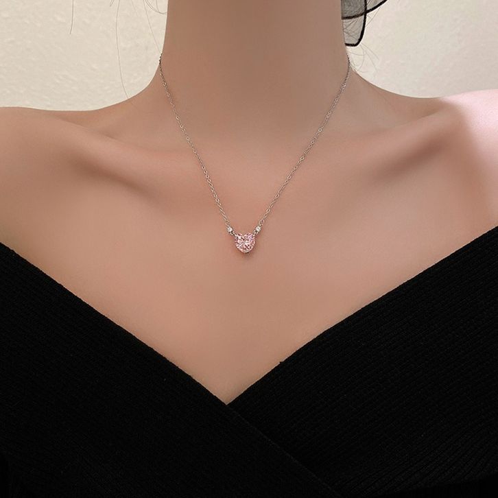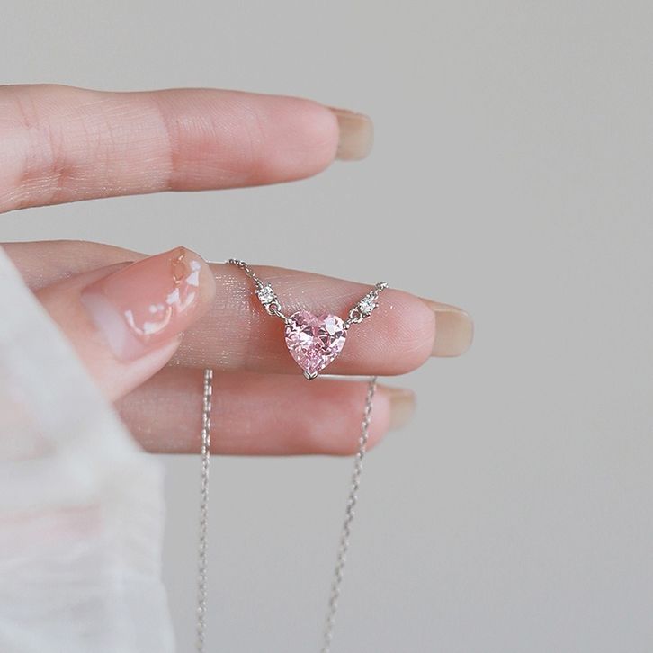 Joe Kalung Permata Pinky Love Heart Hati Merah Muda Lionting Kecil Rantai Silver Alloy Elegan Simple