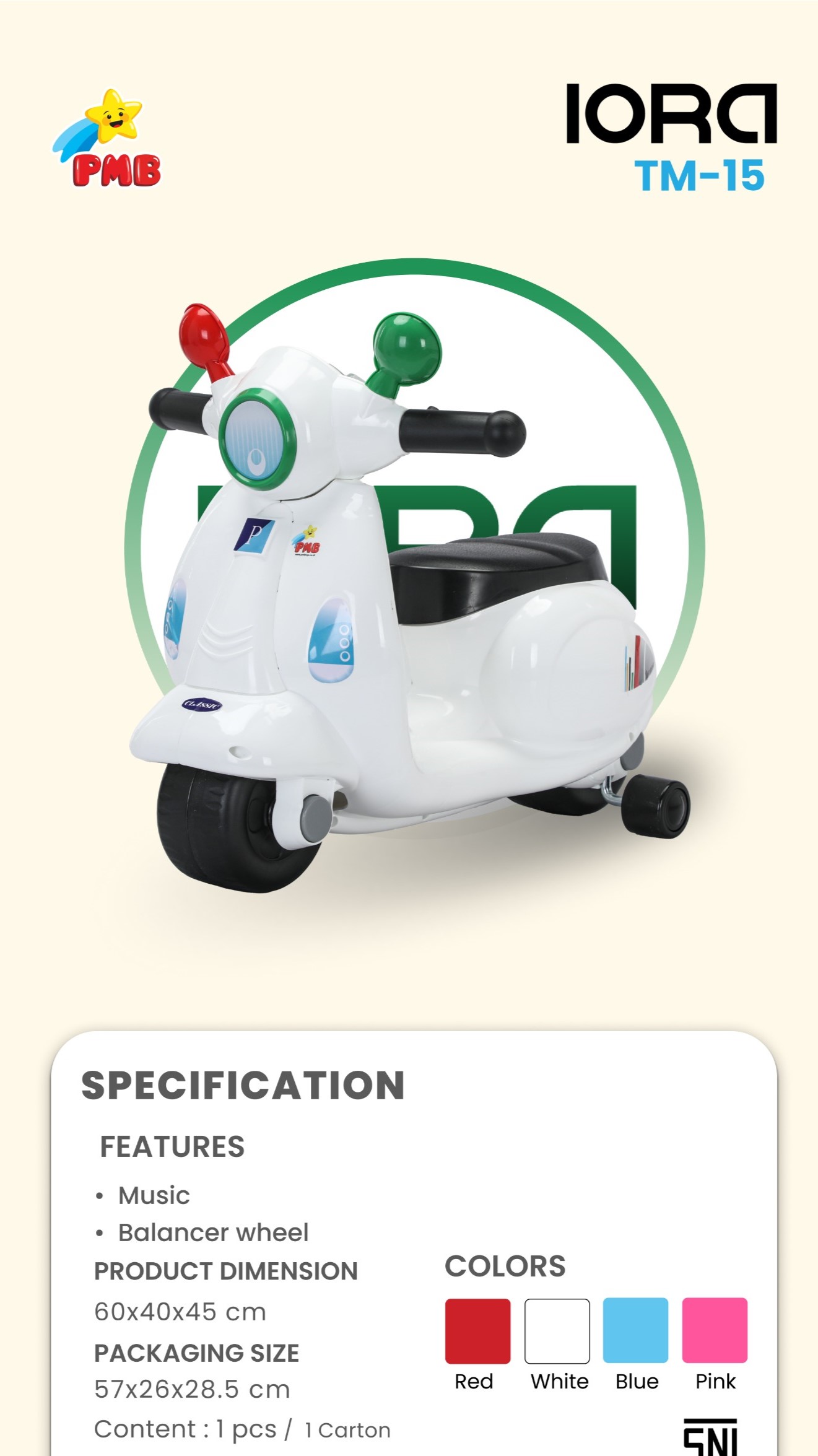 MOTOR MAINAN ANAK Ride On - IORA TM15 PMB TOYS
