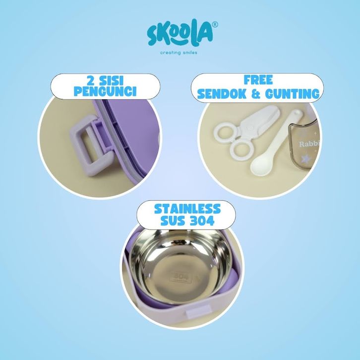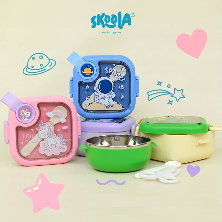 Skoola Kotak Bekal PAUD Lunch Box Tempat Makan Stainless Anak Perempuan Laki-Laki Lucu - Mebo Small