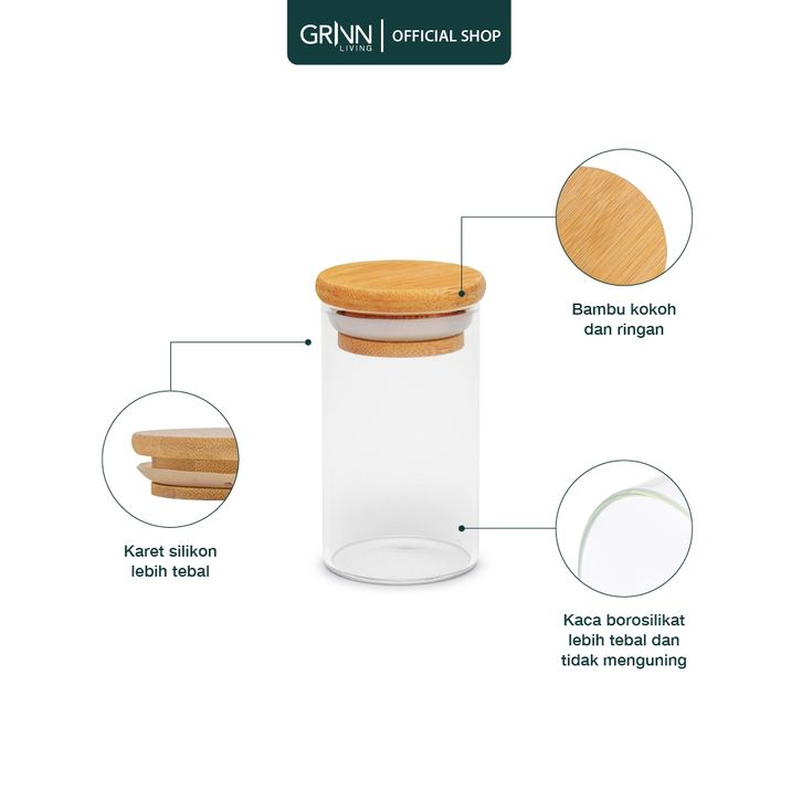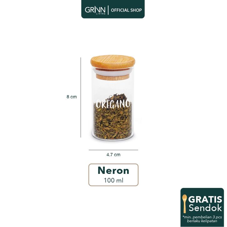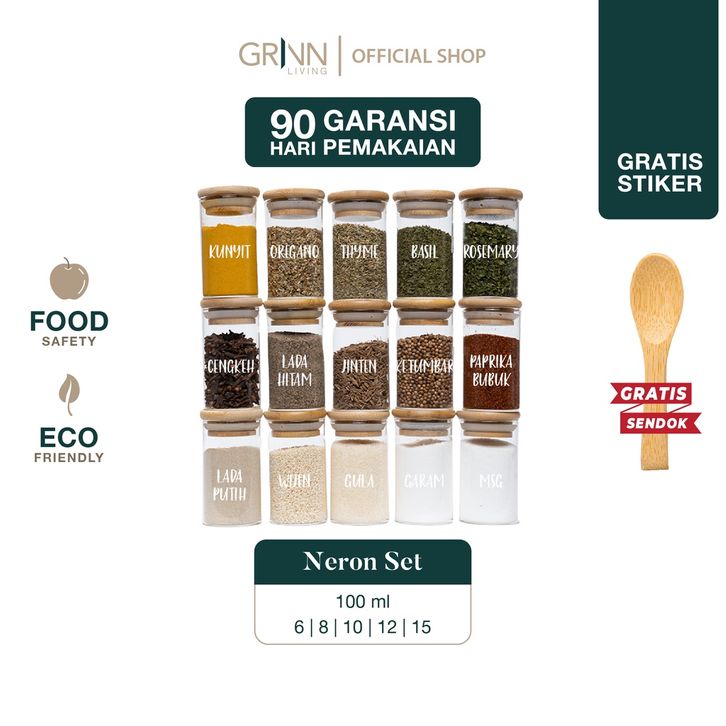 GRINN LIVING SET PAKET Neron jar 100 ml / Toples Kaca Tutup Bambu Kayu / Toples Bumbu Dapur Aesthetic